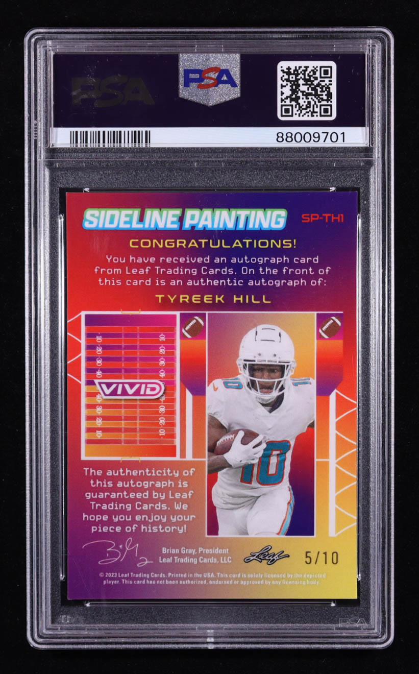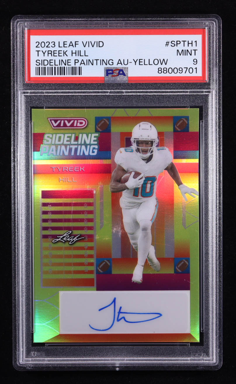 Tyreek Hill 2023 Leaf Vivid Sideline Painting Yellow Autographs #SP-TH1 #5/10 (PSA 9)