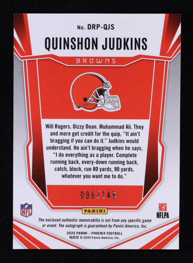 Quinshon Judkins 2025 Panini Phoenix Dual Rookie Patch Autographs Silver #5 #098/149 RC