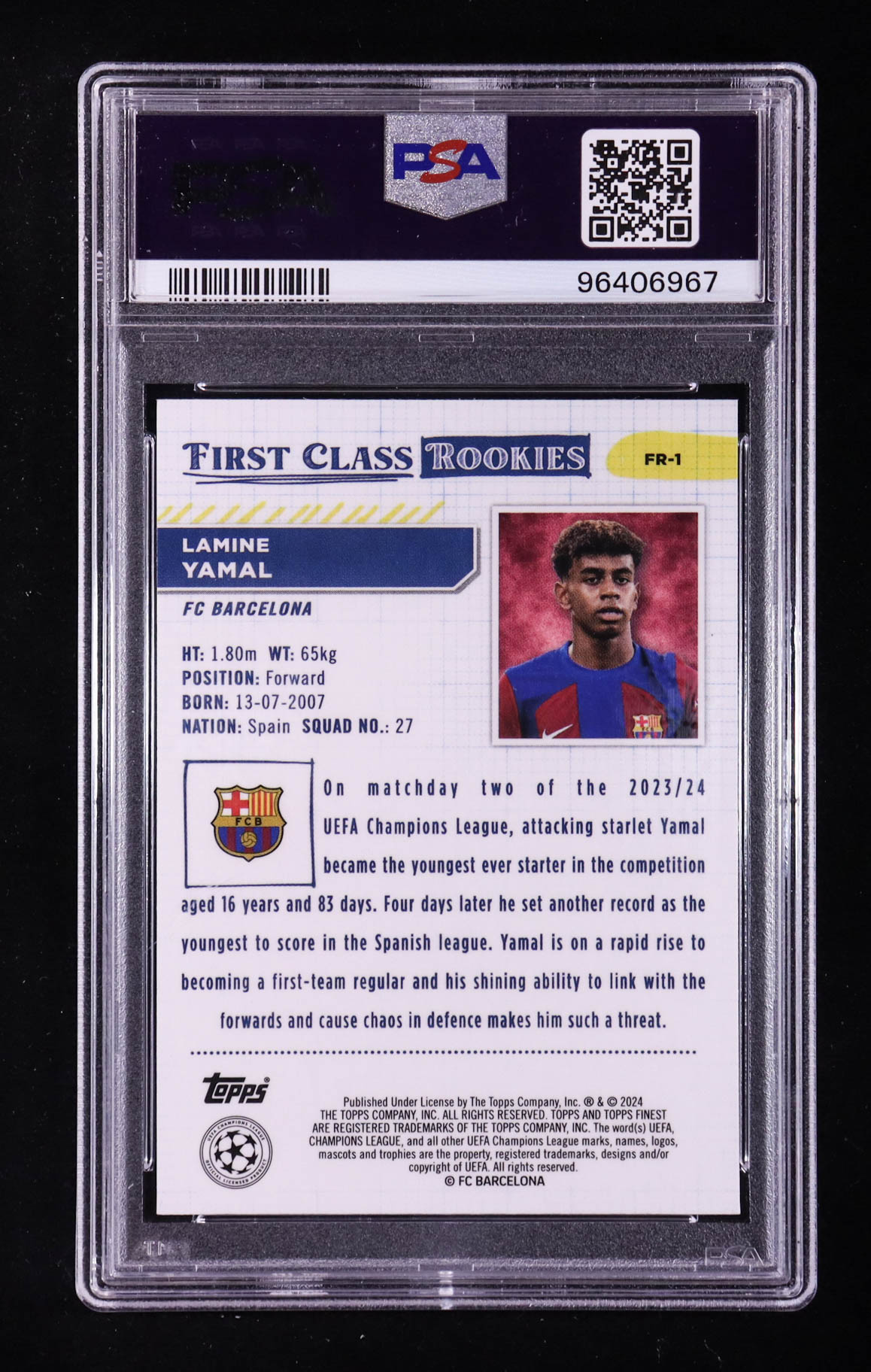 Lamine Yamal 2023-24 Finest UEFA Club Competitions First Class Rookies #FR1 RC (PSA 10)