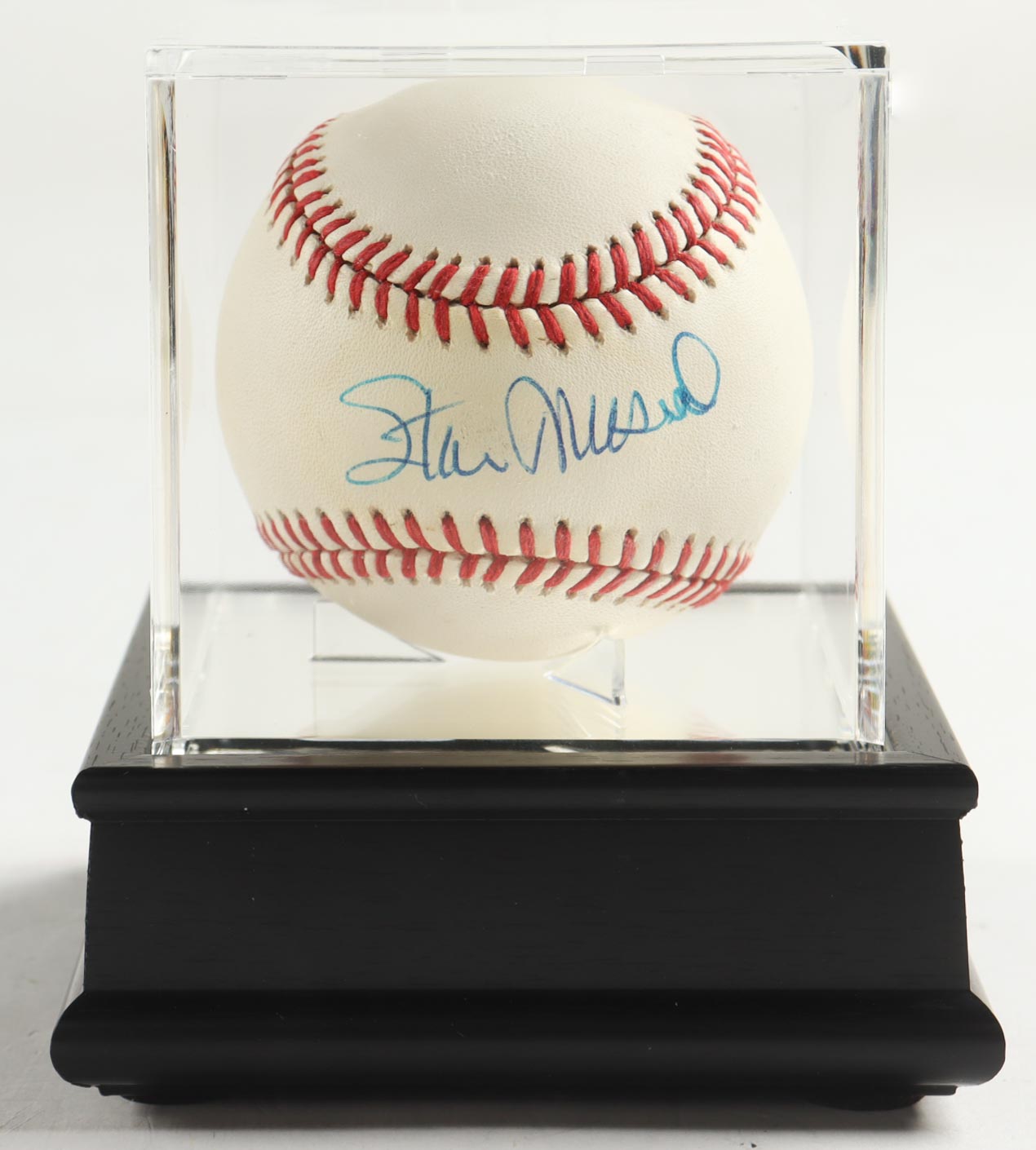 Stan Musial Signed ONL Baseball with Display Case (PSA)