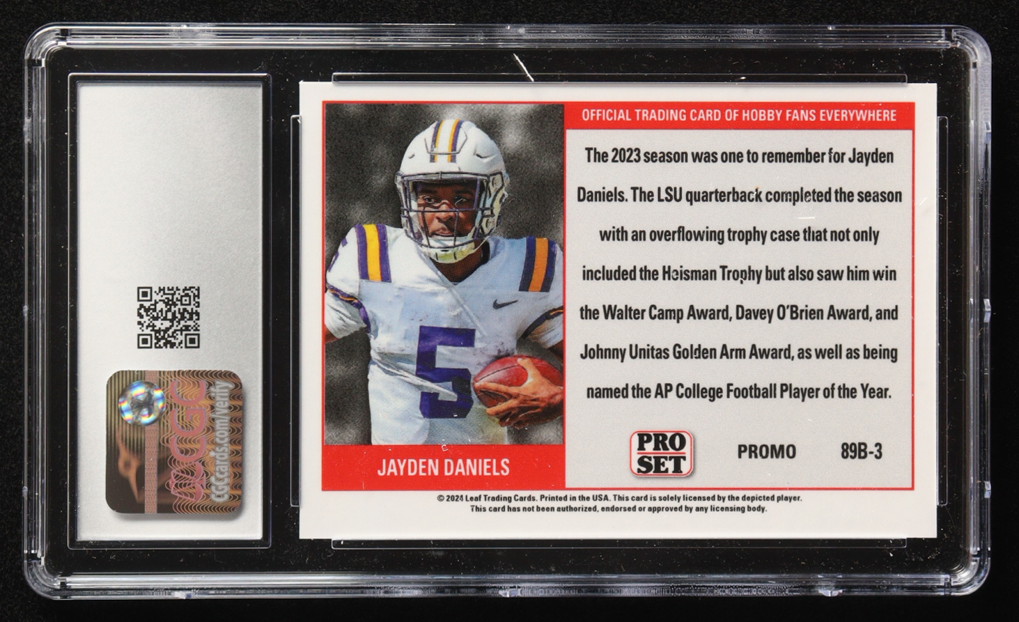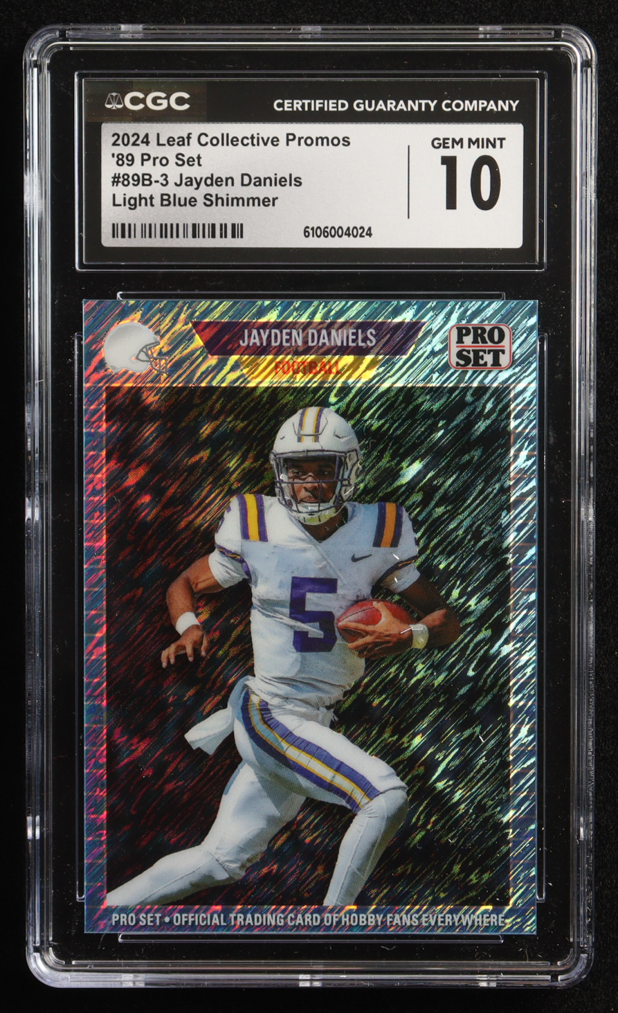 Jayden Daniels 2024 Leaf Collective Promo '89 Pro Set Shimmer Light Blue #89B3 (CGC 10)