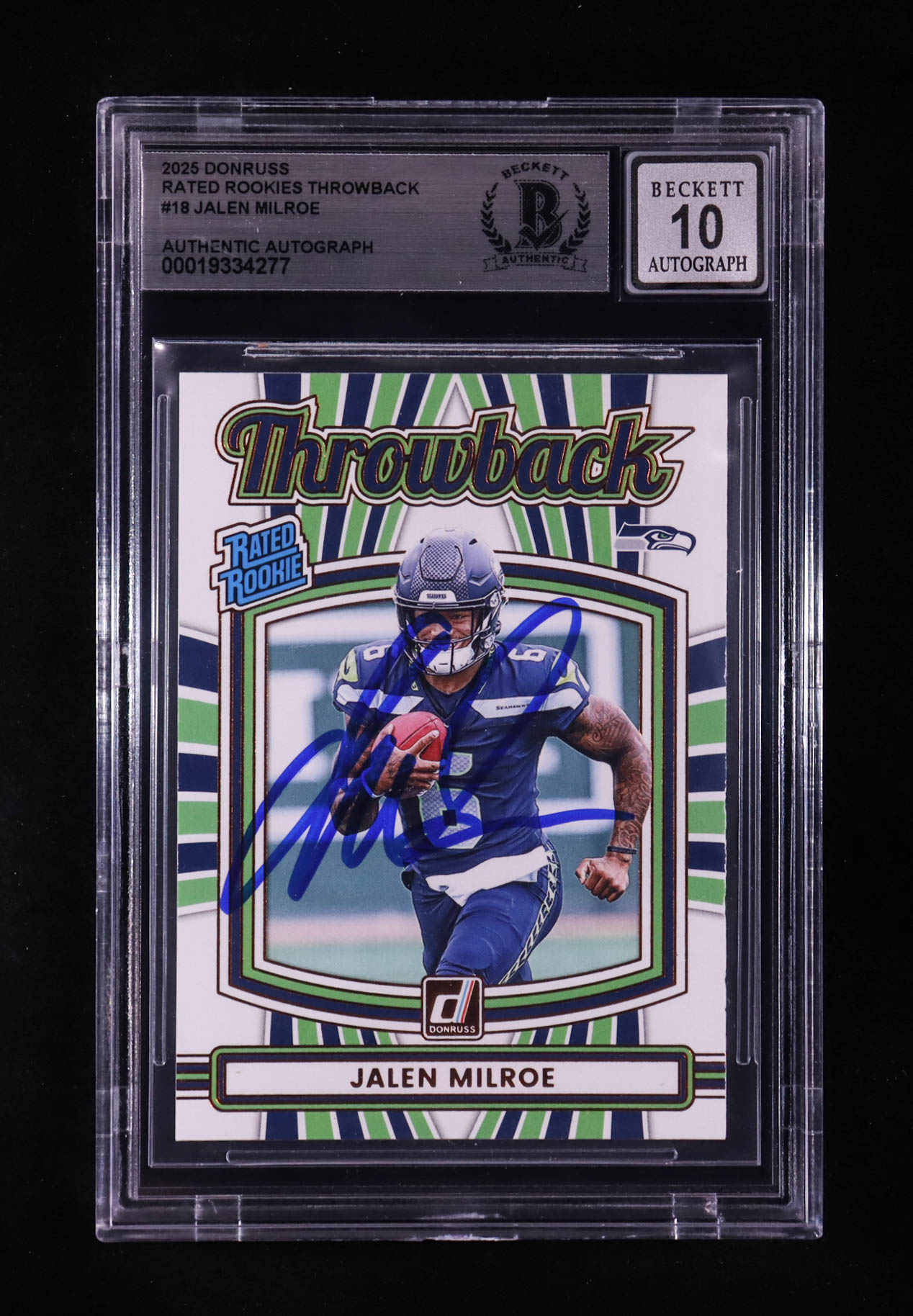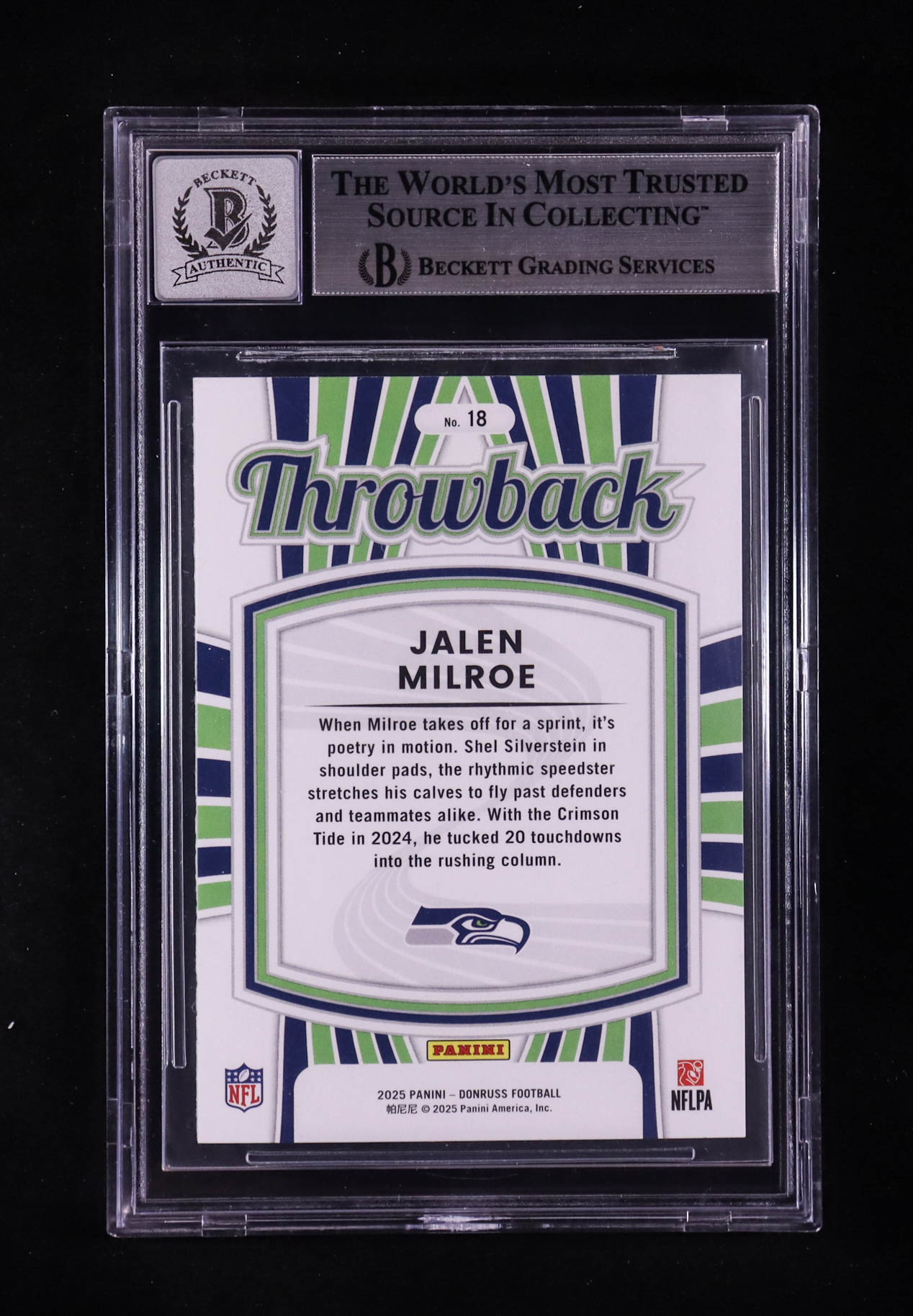 Jalen Milroe Signed 2025 Donruss Rated Rookies Throwback #18 RC (BGS | Auto 10)