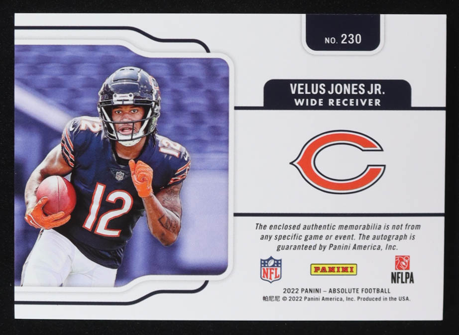 Velus Jones Jr. 2022 Absolute Rookie Premiere Materials Autographs Quad #230 #038/199 RC
