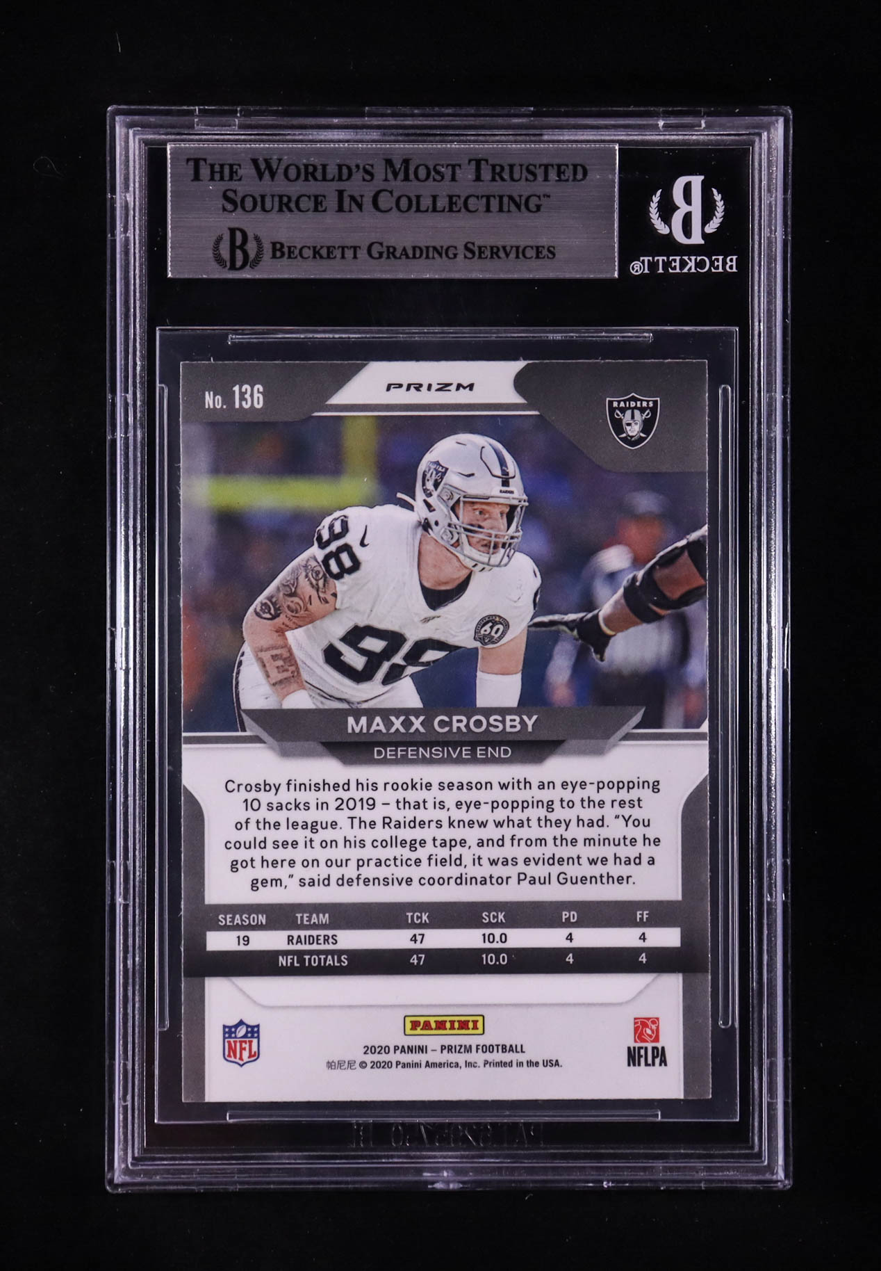 Maxx Crosby Signed 2020 Panini Prizm Prizms #136 (BGS)