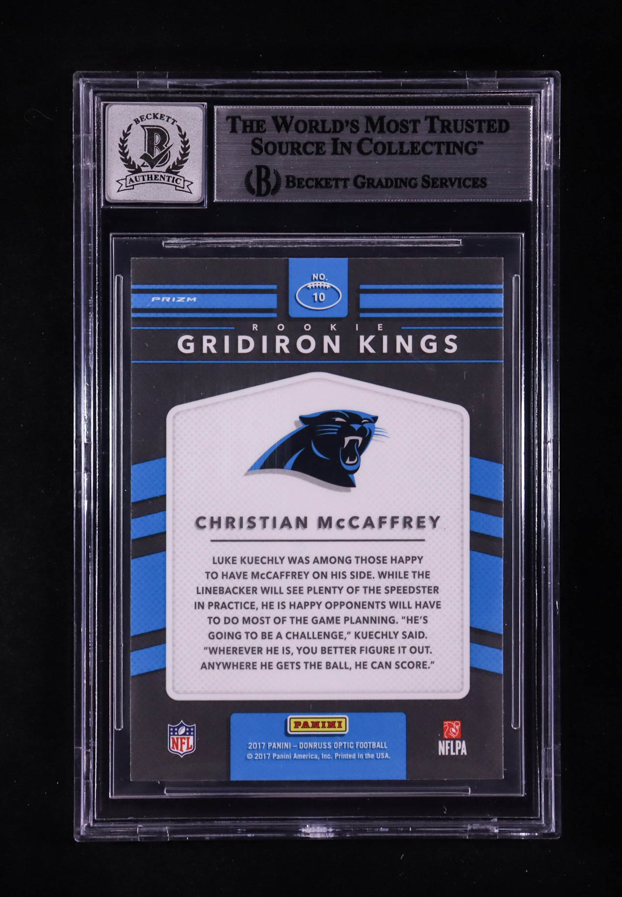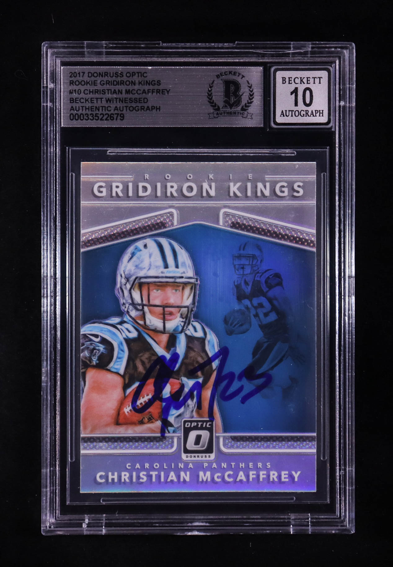 Christian McCaffrey Signed 2017 Donruss Optic Rookie Gridiron Kings #10 RC (BGS | Auto 10)