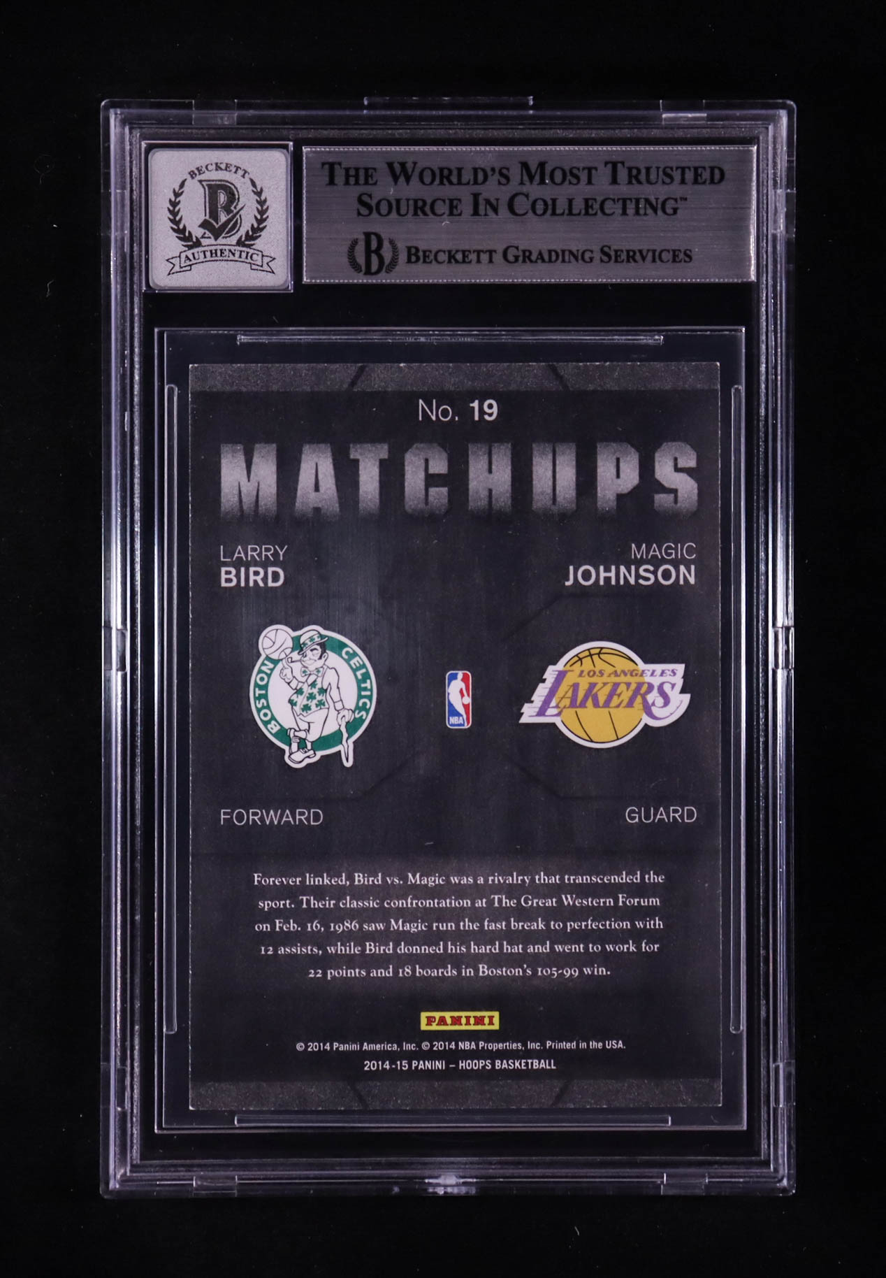 Larry Bird & Magic Johnson Signed 2014-15 Hoops Matchups #19 (BGS | Auto 10)