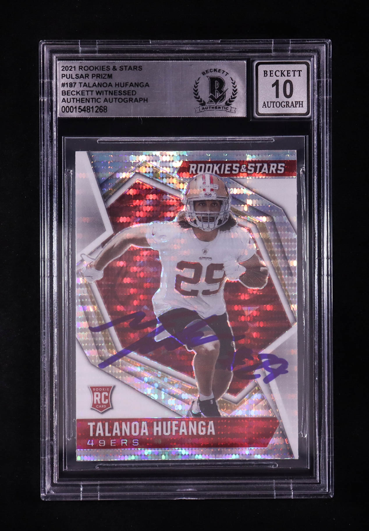 Talanoa Hufanga Signed 2021 Rookies & Stars Pulsar Prizm #187 RC (BGS | Auto 10)
