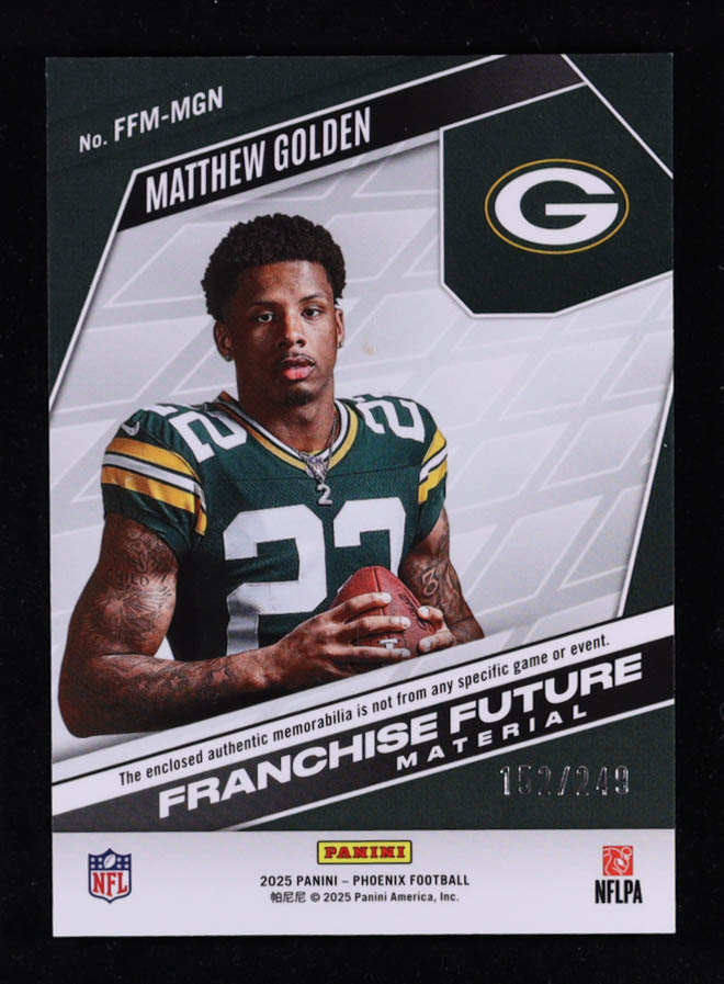 Matthew Golden 2025 Panini Phoenix Franchise Future Material Green #10 #49/99 RC