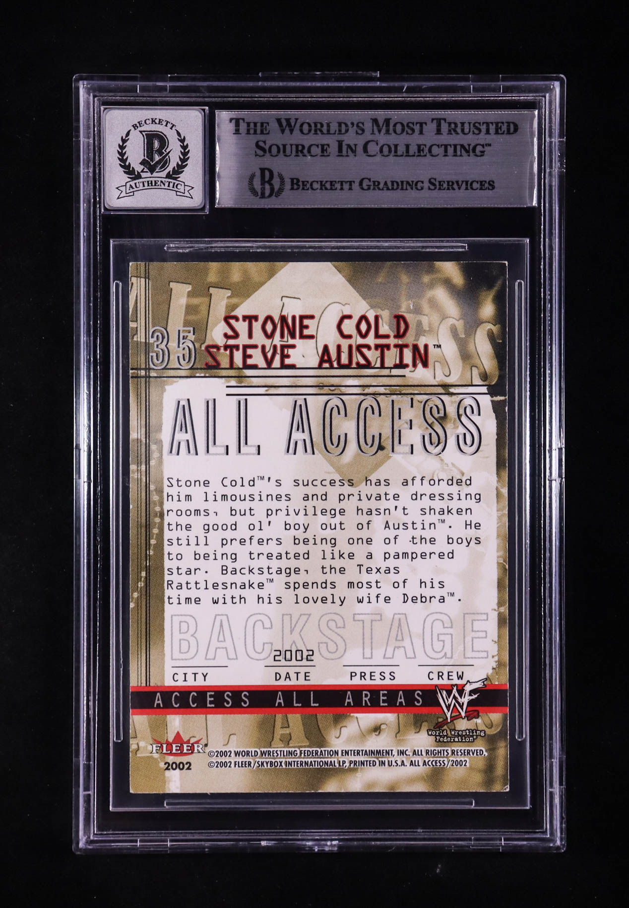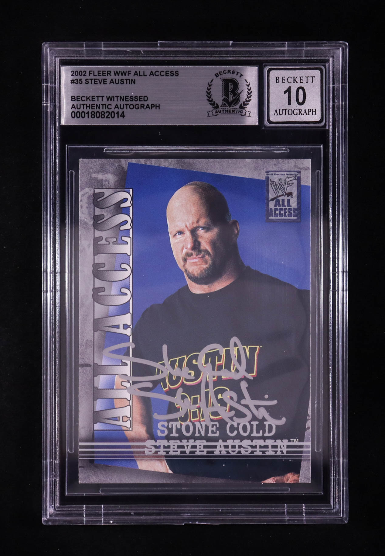 "Stone Cold" Steve Austin Signed 2002 Fleer WWF All Access #35 (BGS | Auto 10)