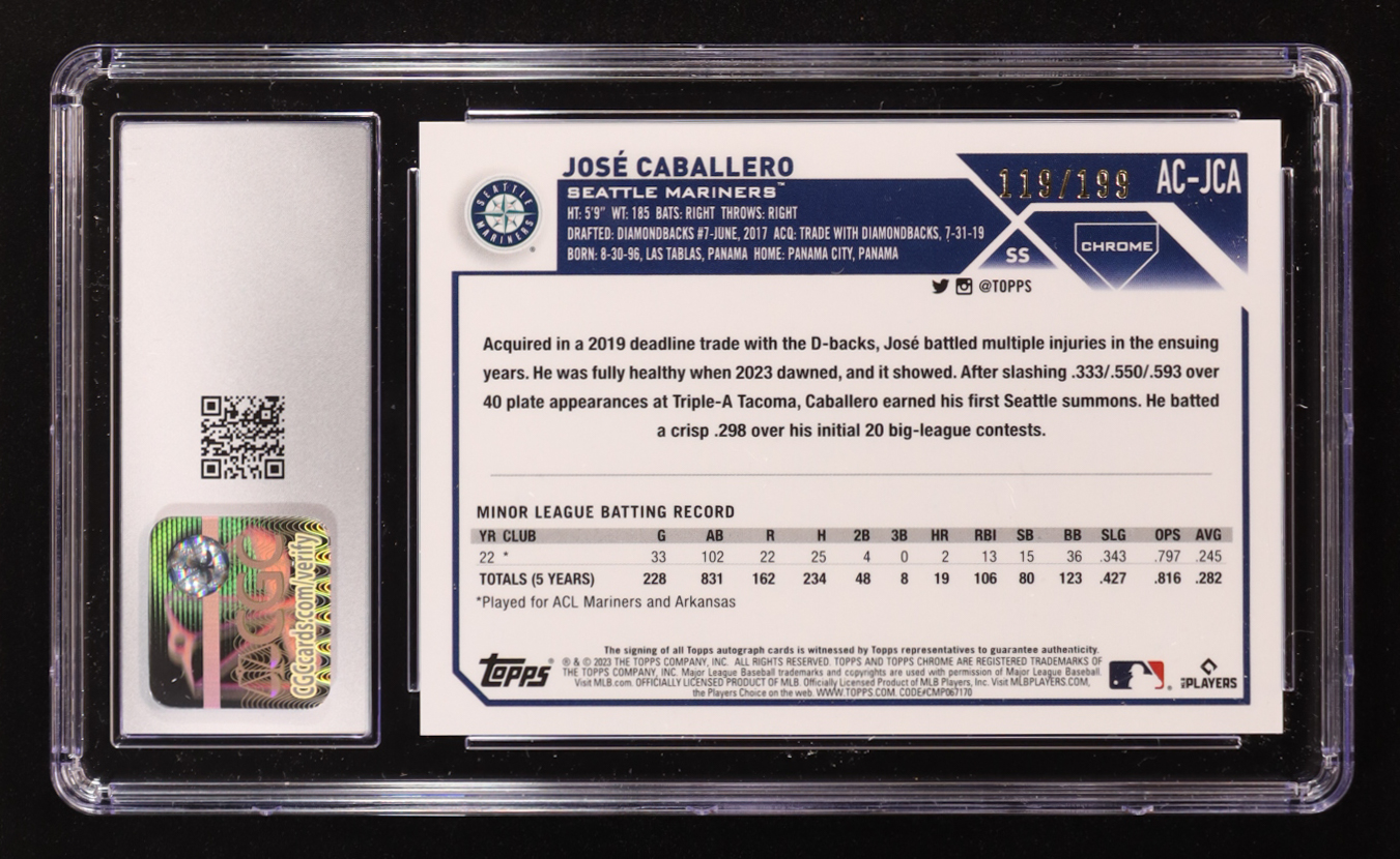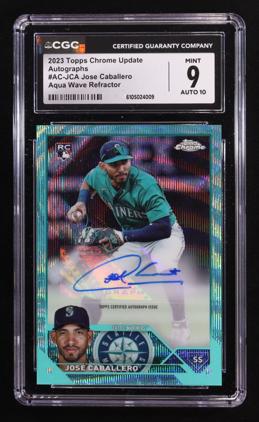 Jose Caballero 2023 Topps Chrome Update Autographs Aqua Wave Refractors #ACJCA #119/199 RC (CGC 9)