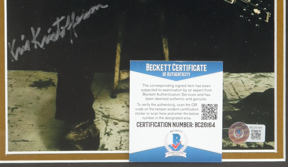 Custom framed photo measures 13" x 16" in size and has been hand-signed by Kris Kristofferson (HOF).
