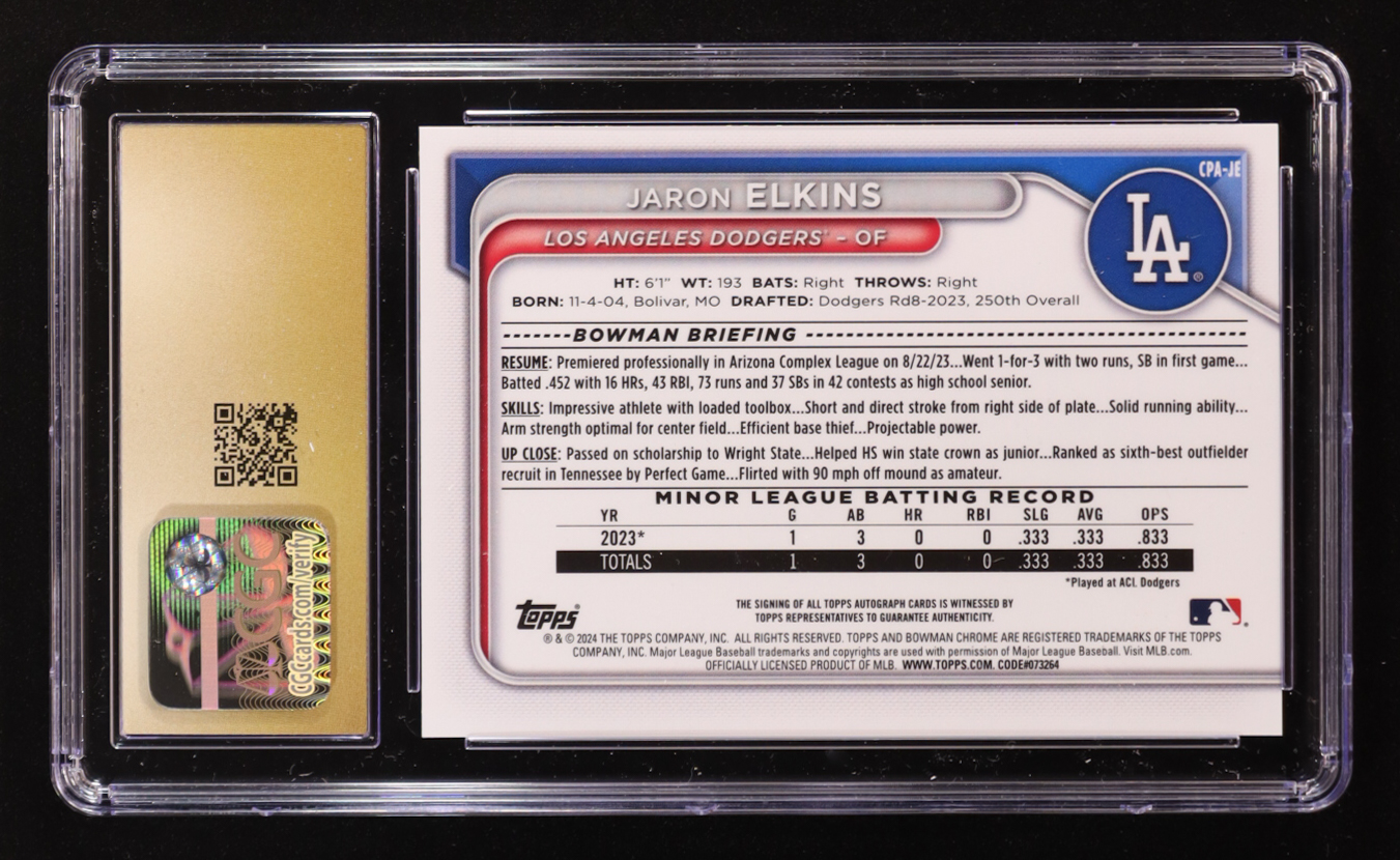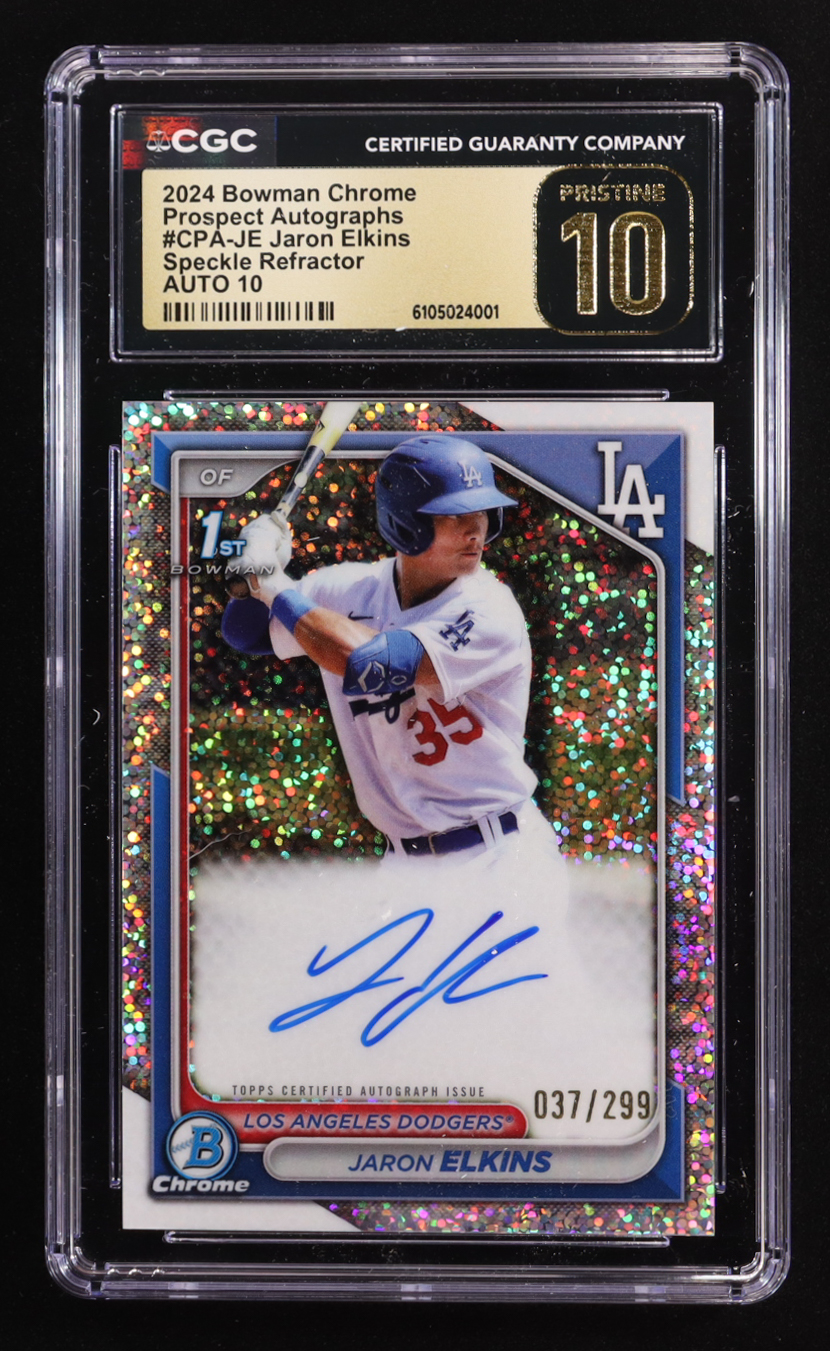 Jaron Elkins 2024 Bowman Chrome Prospect Autographs Speckle Refractors #CPAJE #037 / 299 (CGC 10 Pristine)