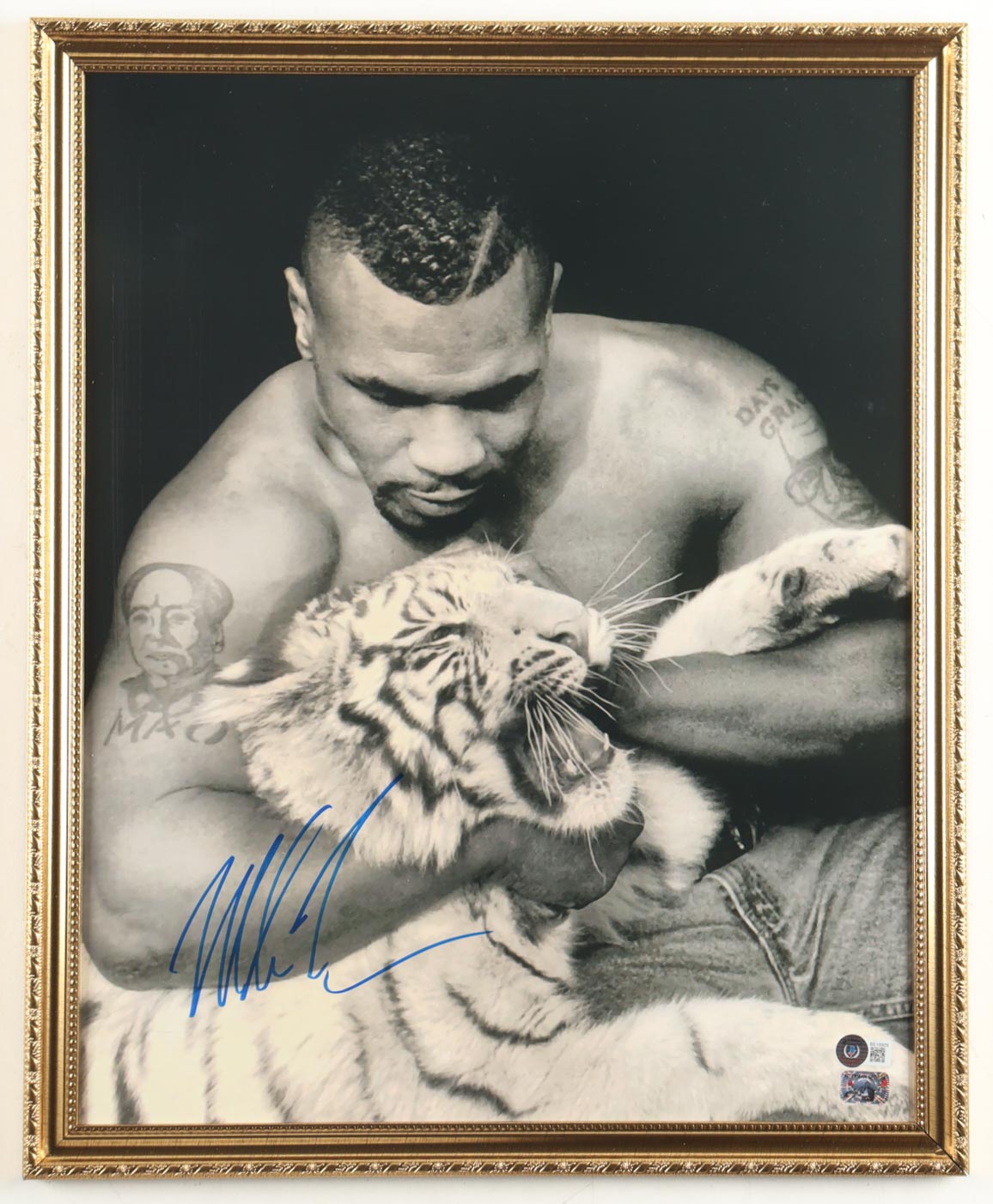 Custom frame measures 17.5" x 21.5" in size and features a photo that has been hand-signed by Mike Tyson (HOF). Please see photos for more details regarding the condition of the item.