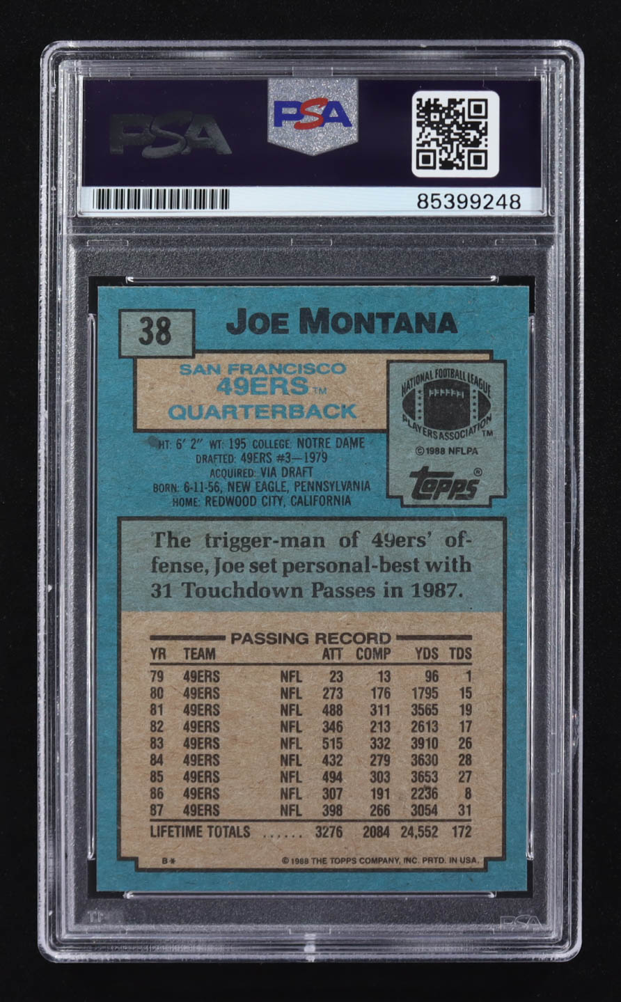 Joe Montana Signed 1988 Topps #38 (PSA)