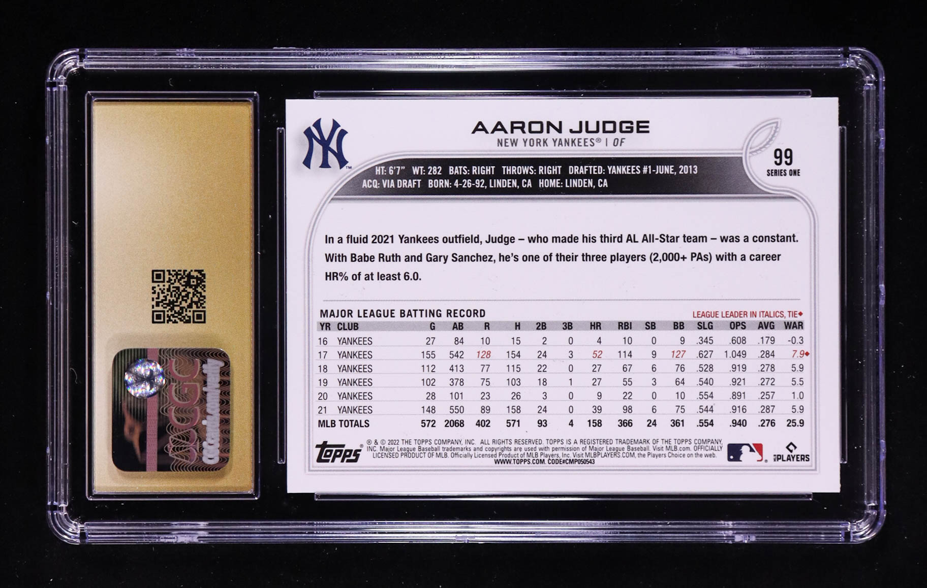 Aaron Judge 2022 Topps #99 (CGC Pristine 10)