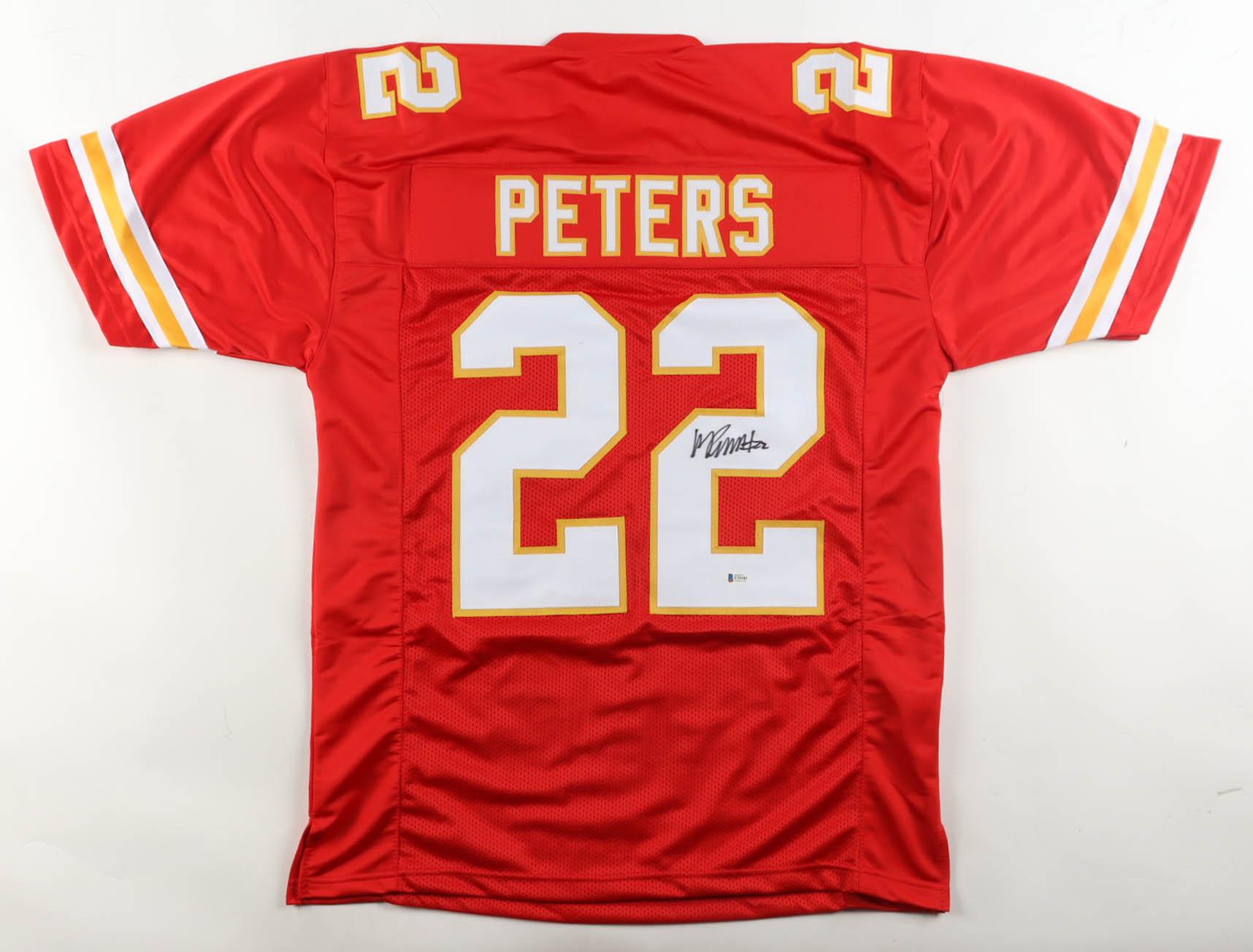 Custom jersey with everything sewn on, size XL. Hand-signed by Marcus Peters.