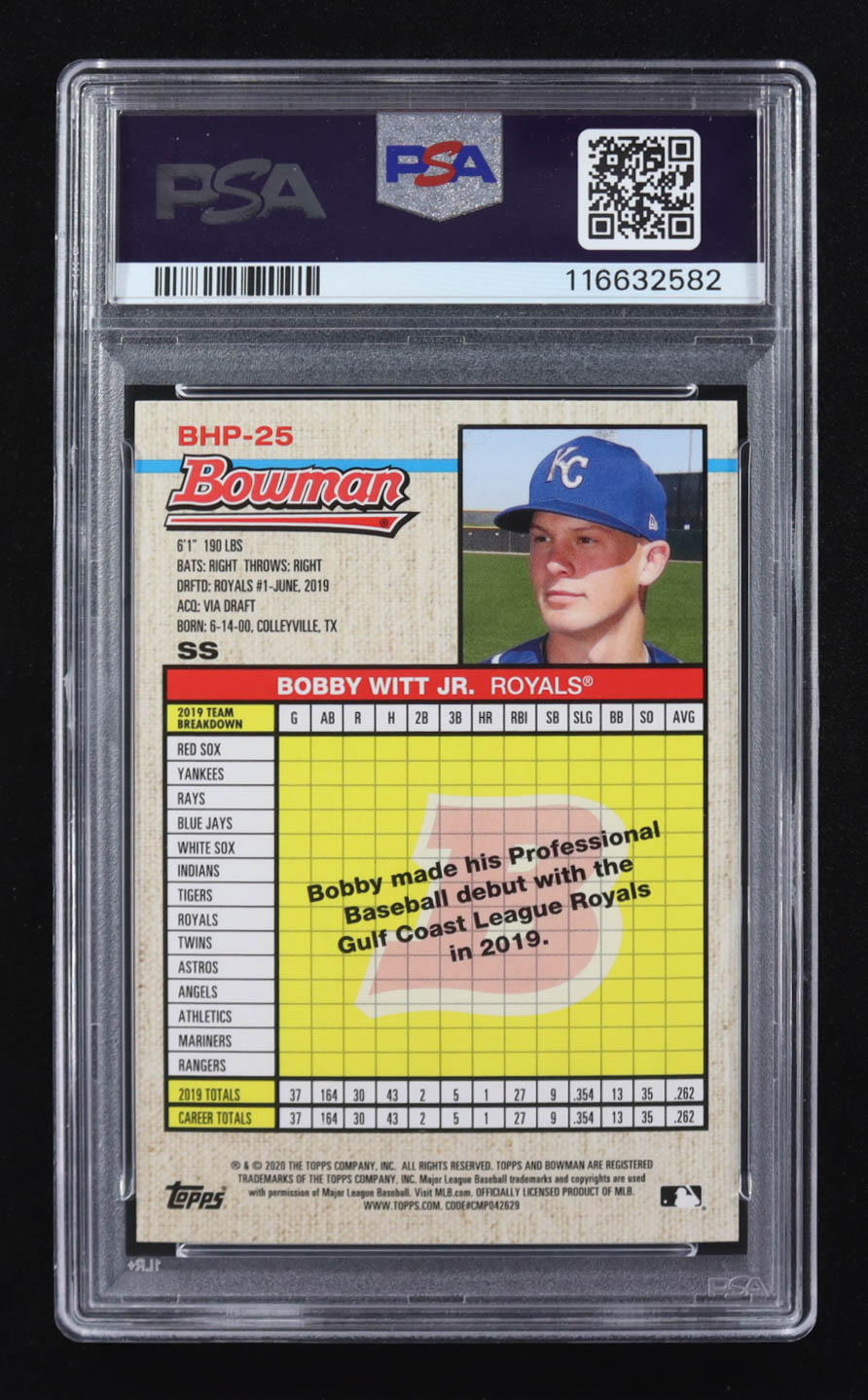 Bobby Witt Jr. 2020 Bowman Heritage Prospects #BHP-25 RC (PSA 10)