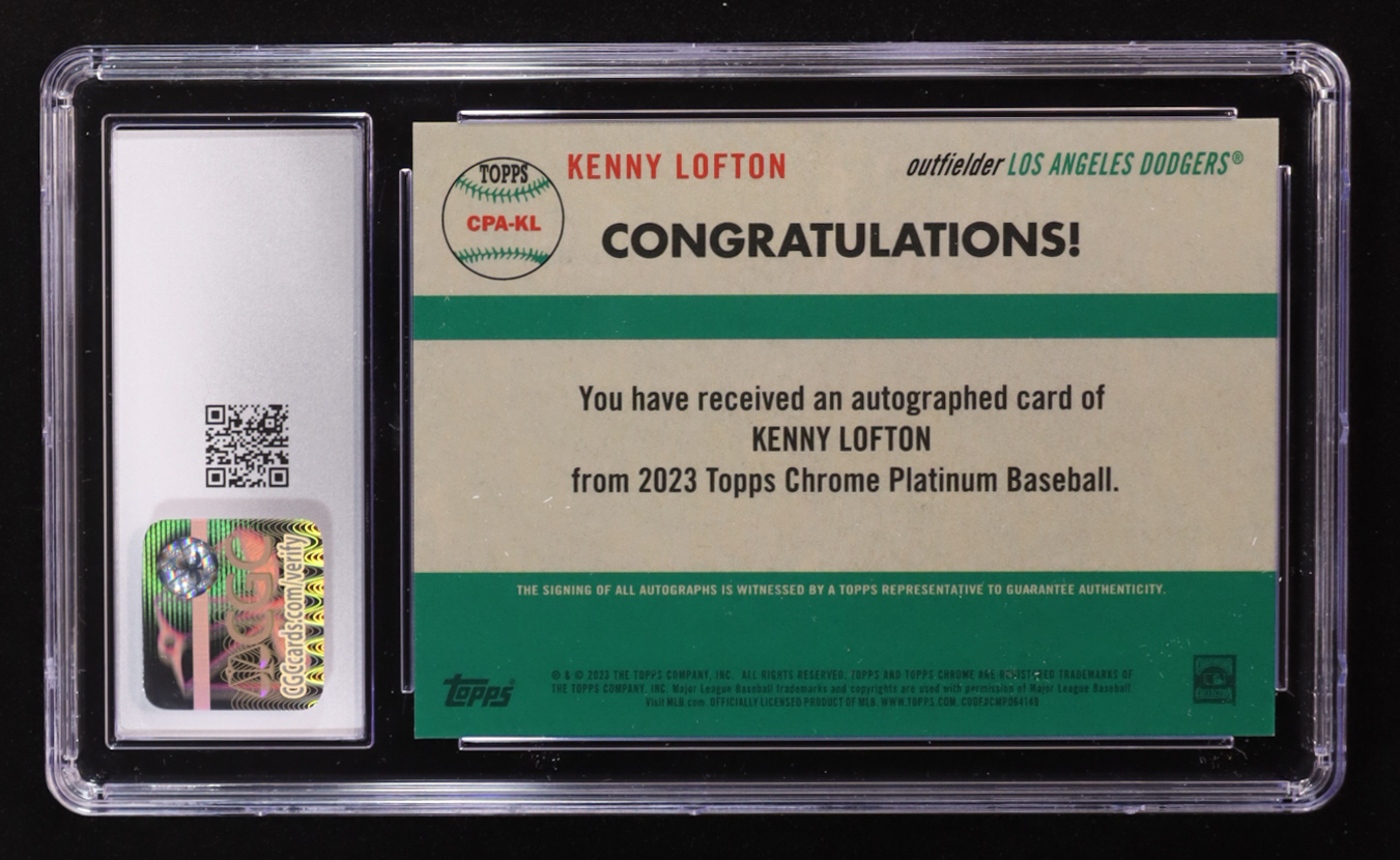 Kenny Lofton 2023 Topps Chrome Platinum Anniversary Autographs Blue Prism Refractors #CPAKL #50/99 (CGC 9.5)