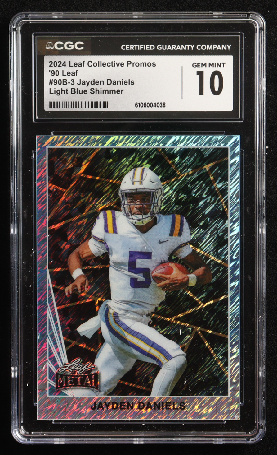 Jayden Daniels 2024 Leaf Collective Promo '90 Leaf Shimmer Light Blue #90B3 (CGC 10)