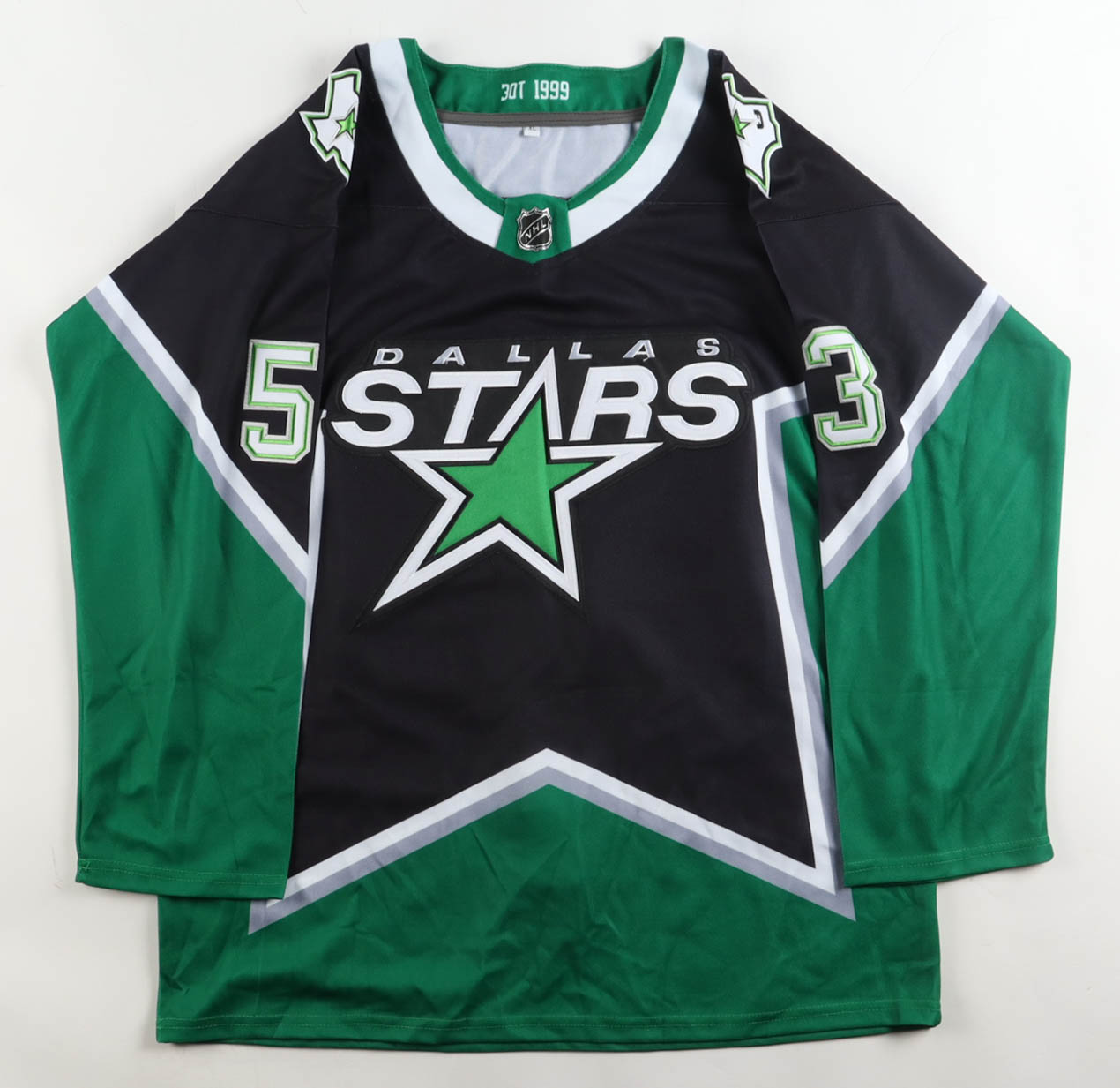 Custom jersey with everything sewn on, size XL. Hand-signed by Wyatt Johnston.
