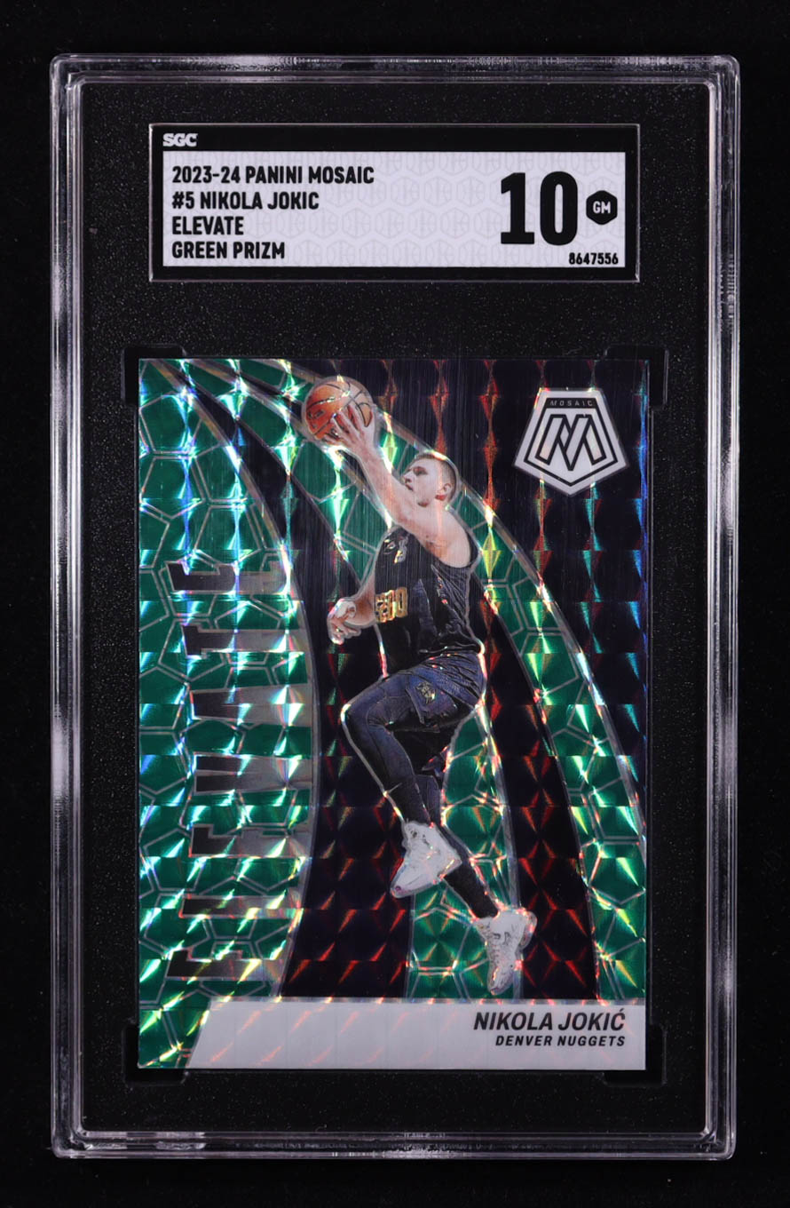 Nikola Jokic 2023-24 Panini Mosaic Elevate Mosaic Green #5 (SGC 10)