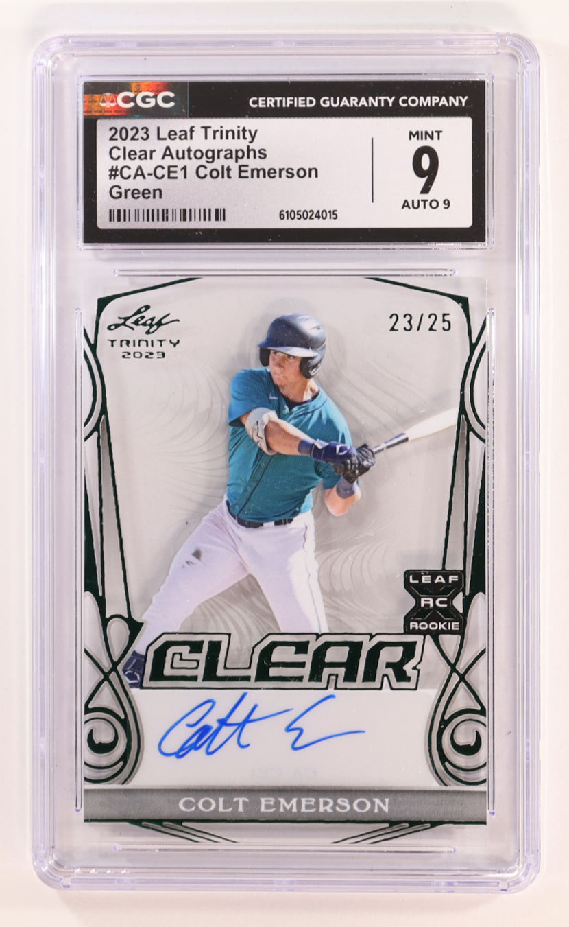 Colt Emerson 2023 Leaf Trinity Clear Autographs Green #CACE1 #23/25 RC (CGC 9)