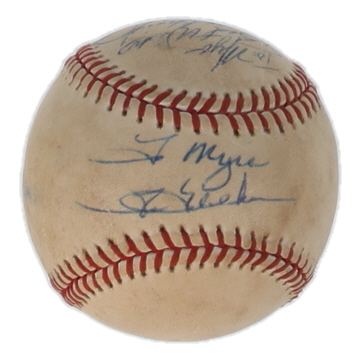 Tom Treblehorn & Jaime Navarro Signed ONL Baseball with Multiple Inscriptions (JSA)