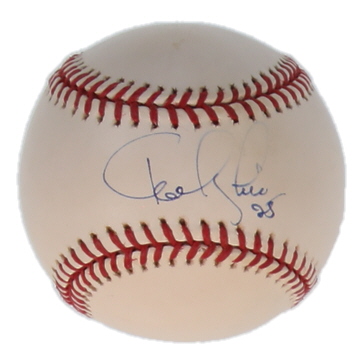 Please note, the baseball is stained and naturally toned, and the signature is fading.