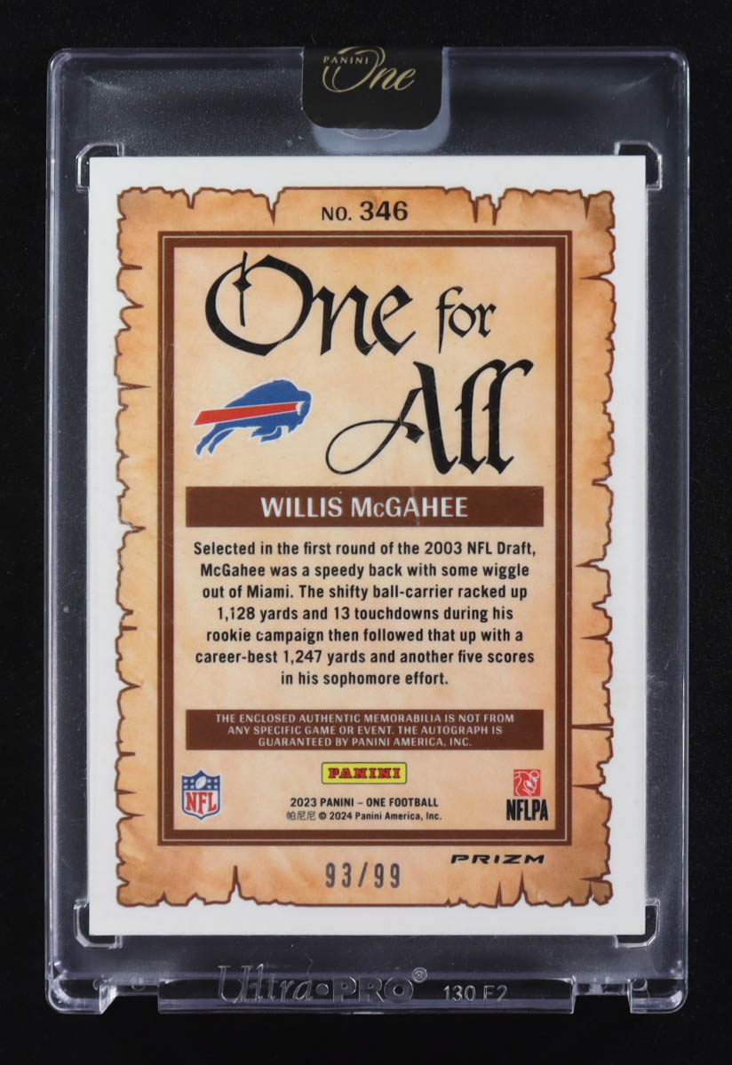 Willis McGahee 2023 Panini One One For All Patch Auto #346 #93/99