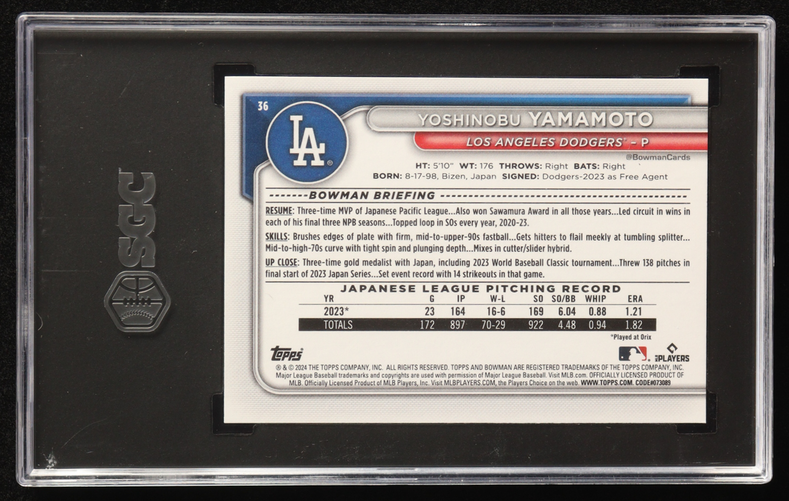 Yoshinobu Yamamoto 2024 Bowman #36 RC (SGC 10)