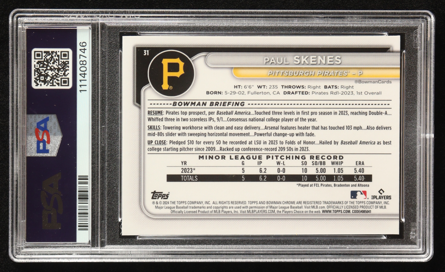 Paul Skenes 2024 Bowman Chrome #31 RC (PSA 9)