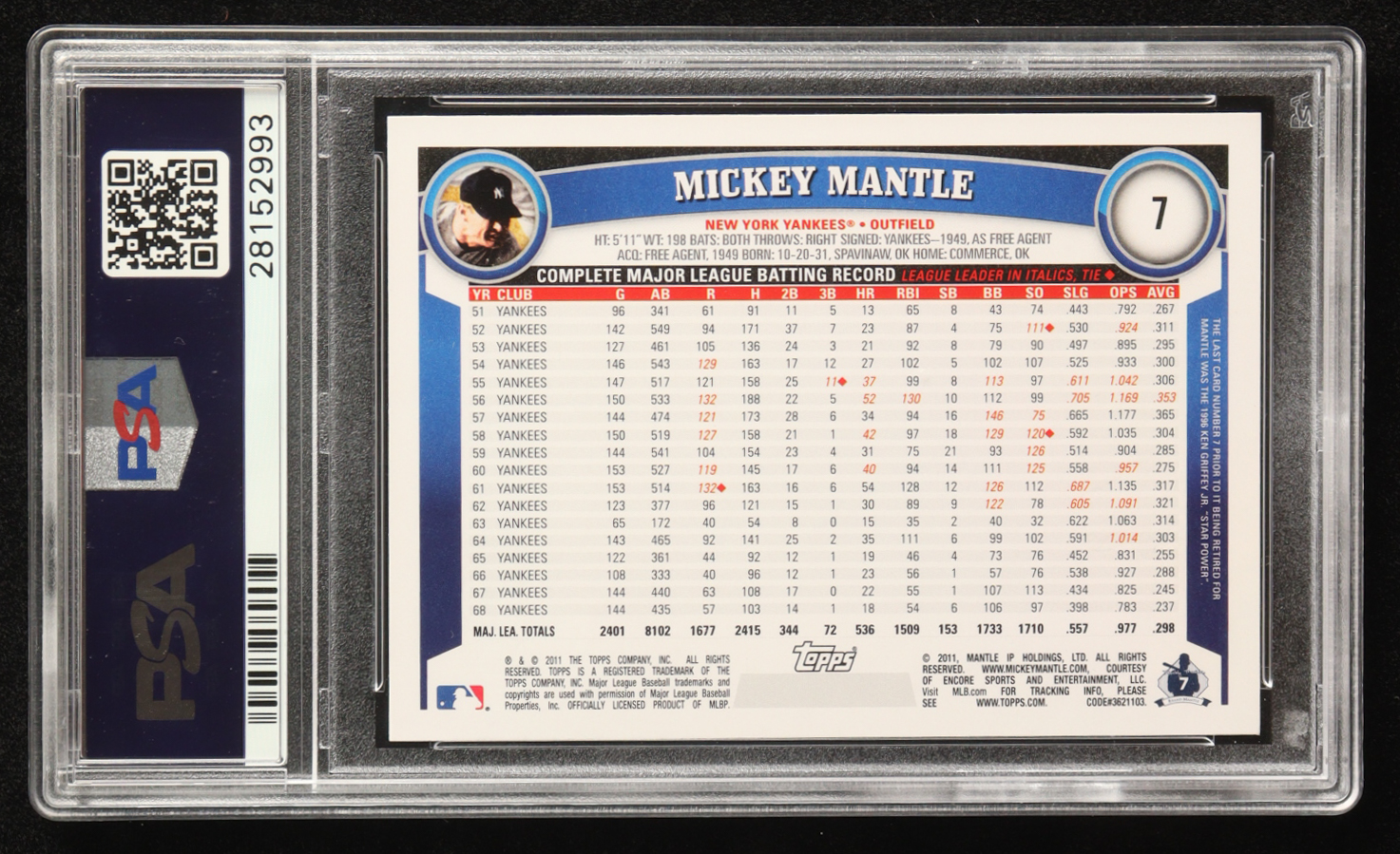 Mickey Mantle 2011 Topps Diamond Anniversary #7 (PSA 10)