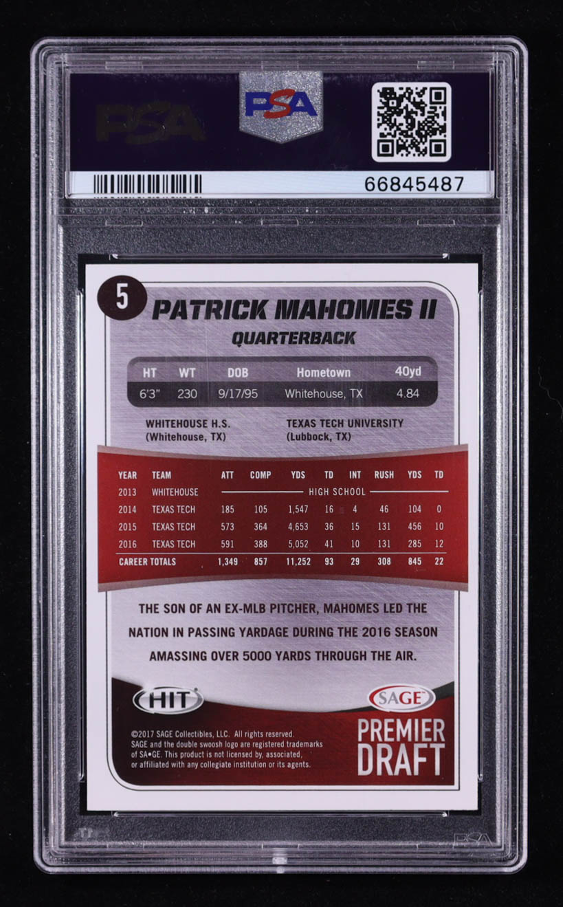 Patrick Mahomes II Sage Hit Premier Draft #5 RC (PSA 10)