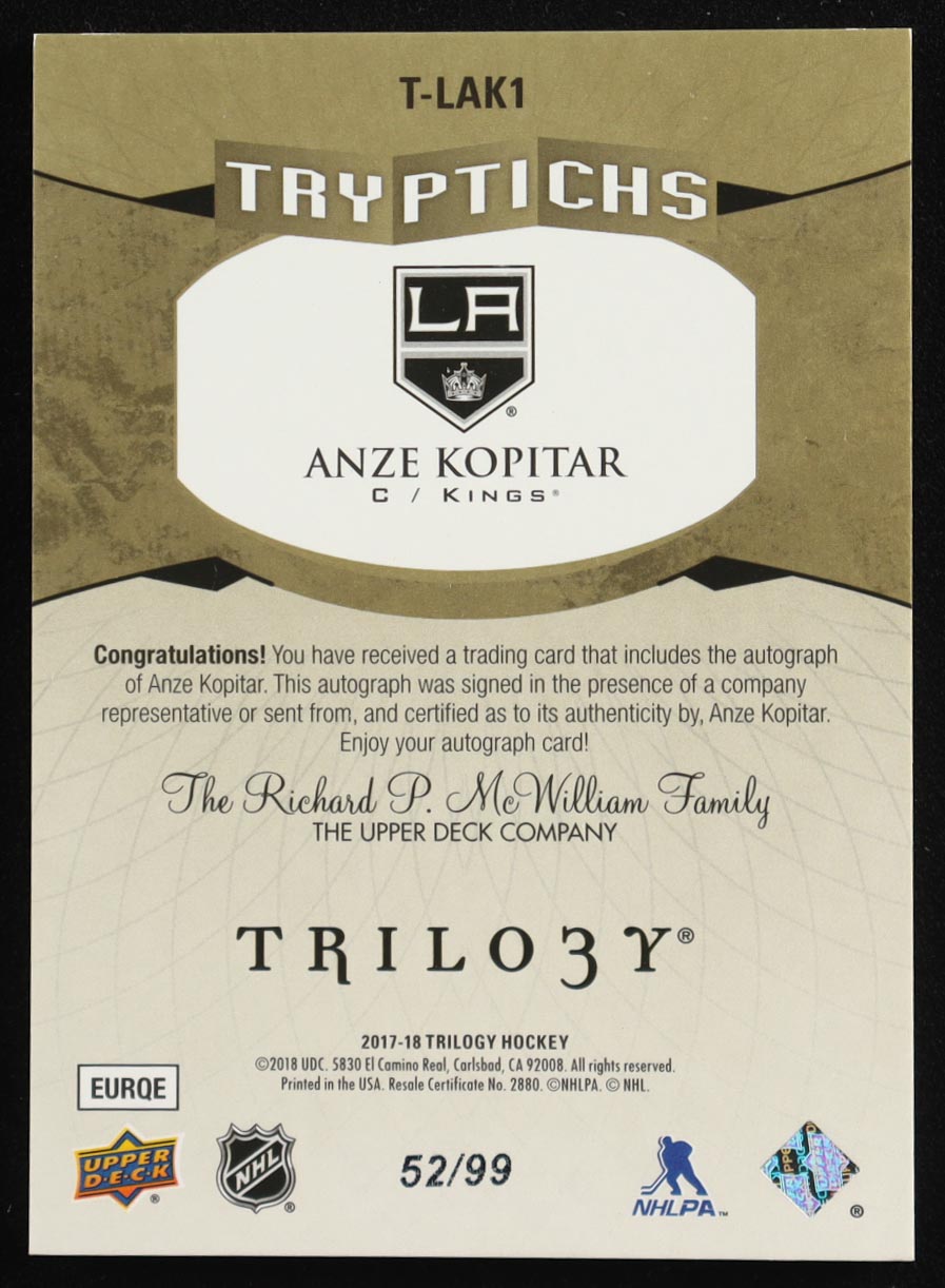 Anze Kopitar 2017-18 Upper Deck Trilogy Tryptichs Autographs #TLAK1 #52/99