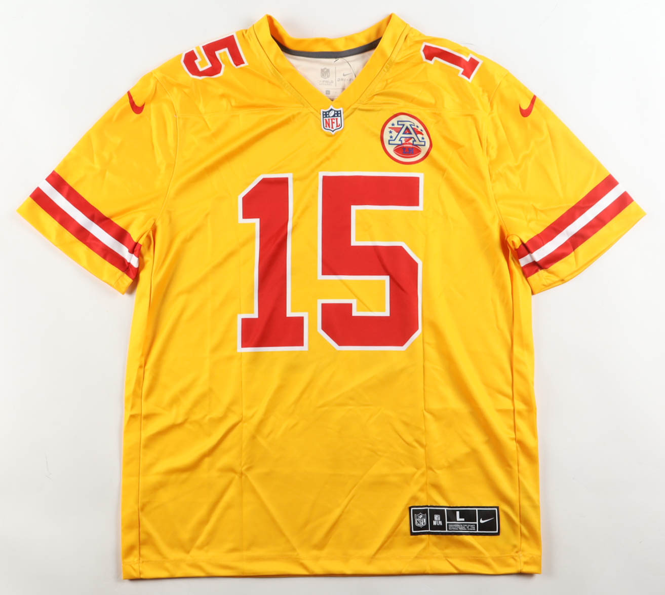 Nike authentic jersey with everything pressed on, size L. Hand-signed by Patrick Mahomes II (Kansas City Chiefs).