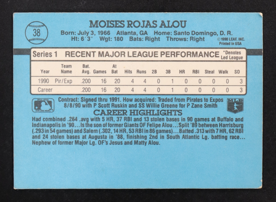 Moises Alou 1991 Donruss #38 RR RC