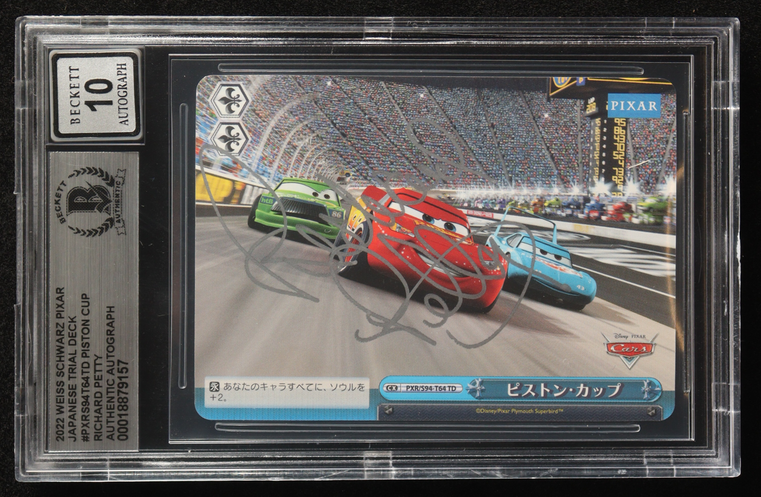 Richard Petty Signed 2022 Weiss Schwarz Pixar Japanese Trial Deck #PXRS94T64TD Piston Cup (BGS Authentic | BGS Autograph Grade 10)