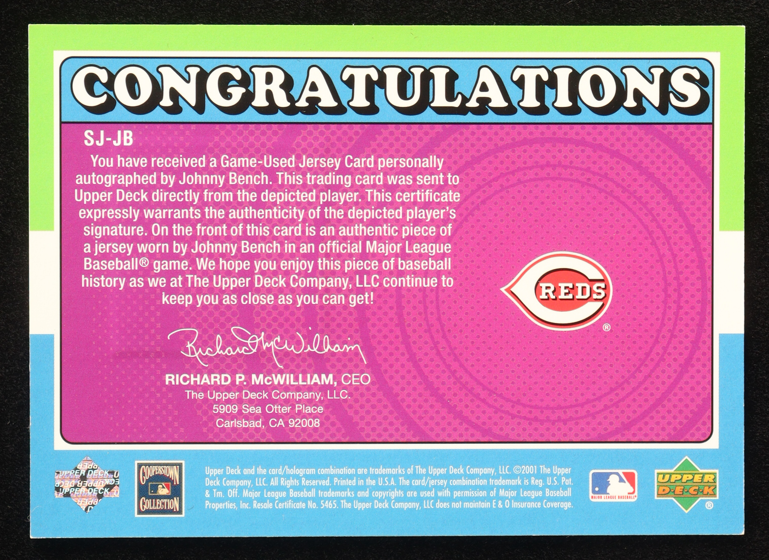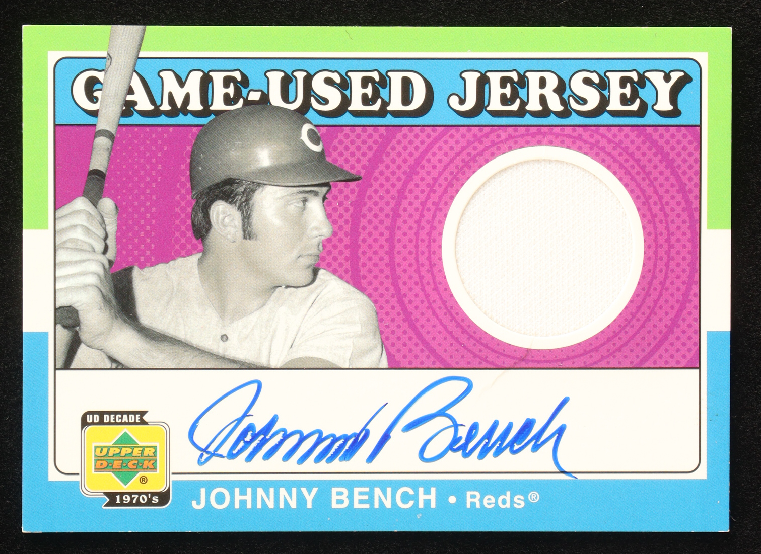 Johnny Bench 2001 Upper Deck Decade 1970's Game Jersey Autograph #SJJB