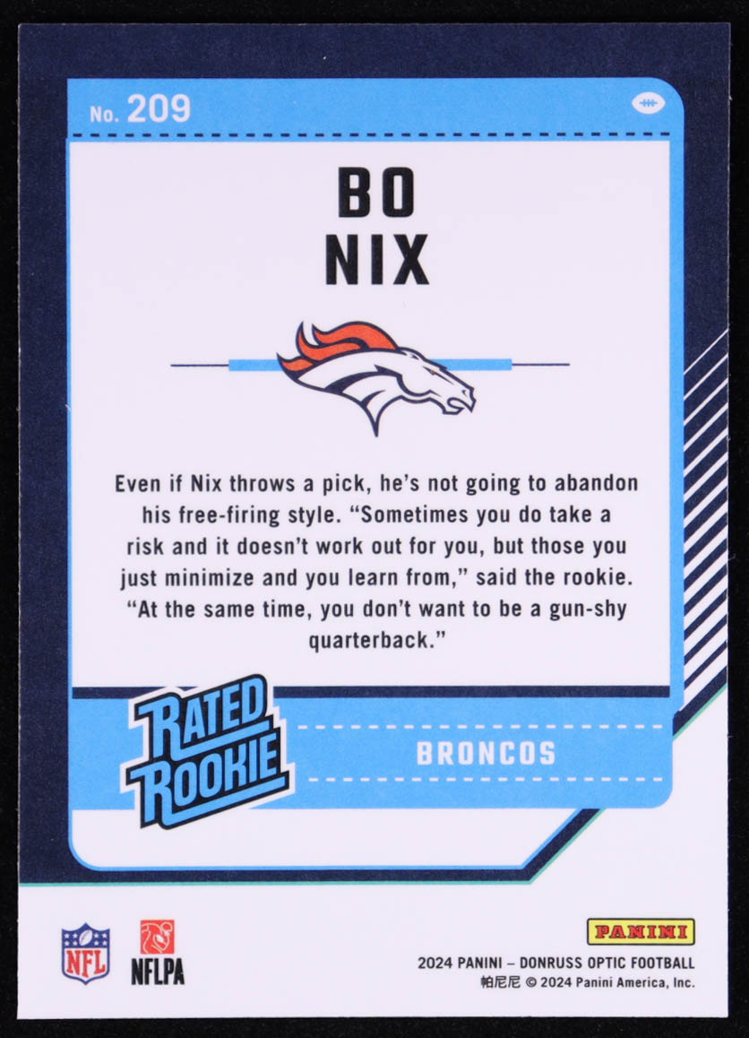 Bo Nix 2024 Donruss Optic #209 RR RC