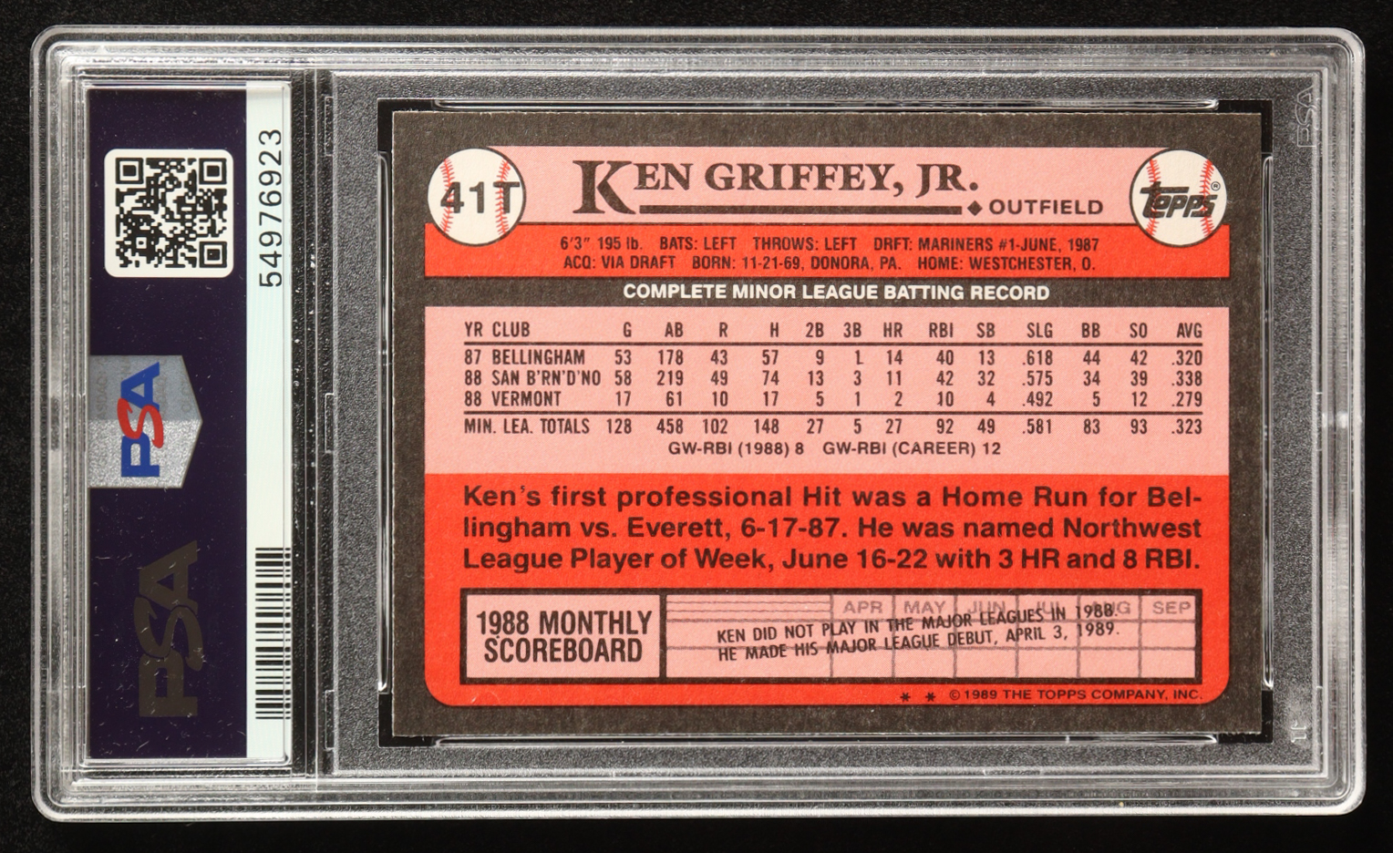 Ken Griffey Jr. 1989 Topps Traded #41T RC (PSA 9)
