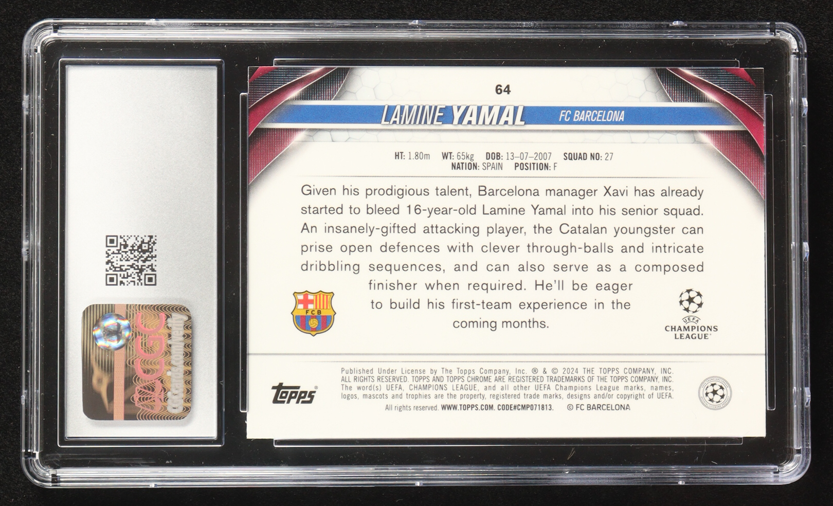 Lamine Yamal 2023-24 Topps Chrome UEFA Club Competitions #64 RC (CGC 10)
