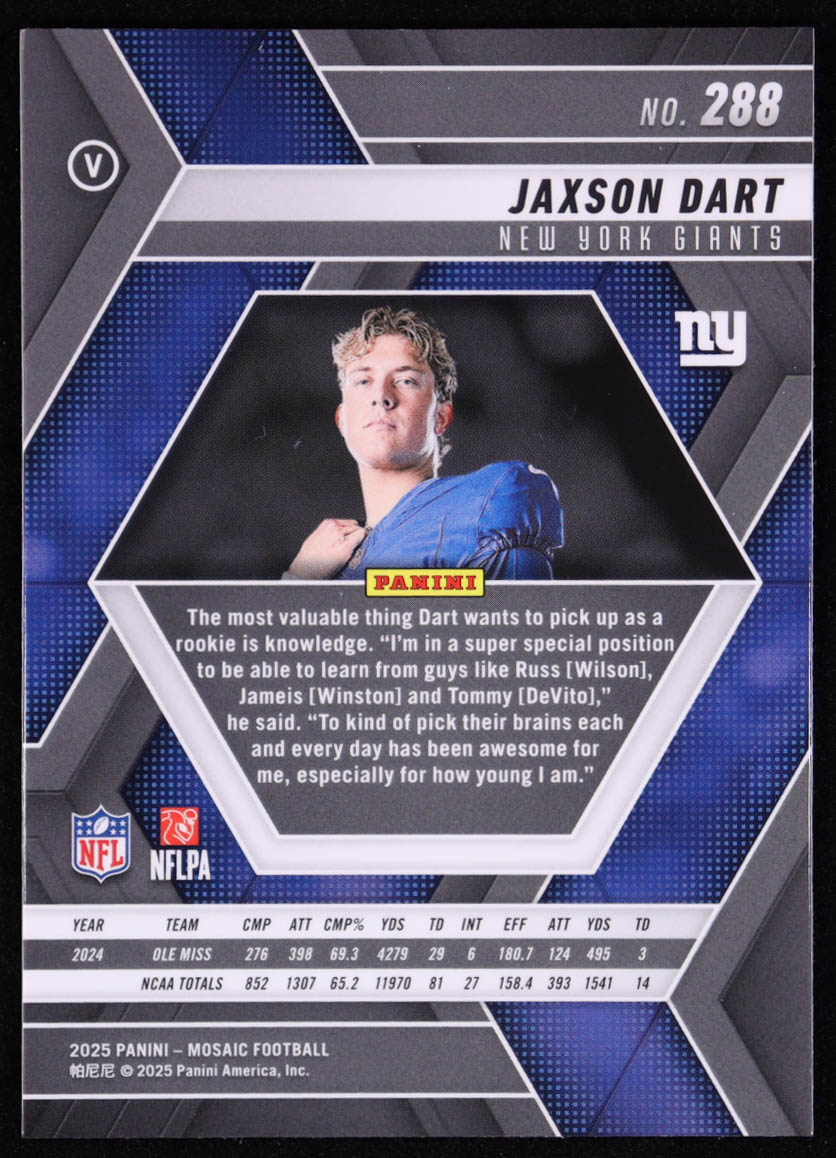 Jaxson Dart 2025 Panini Mosaic VAR #288 RC