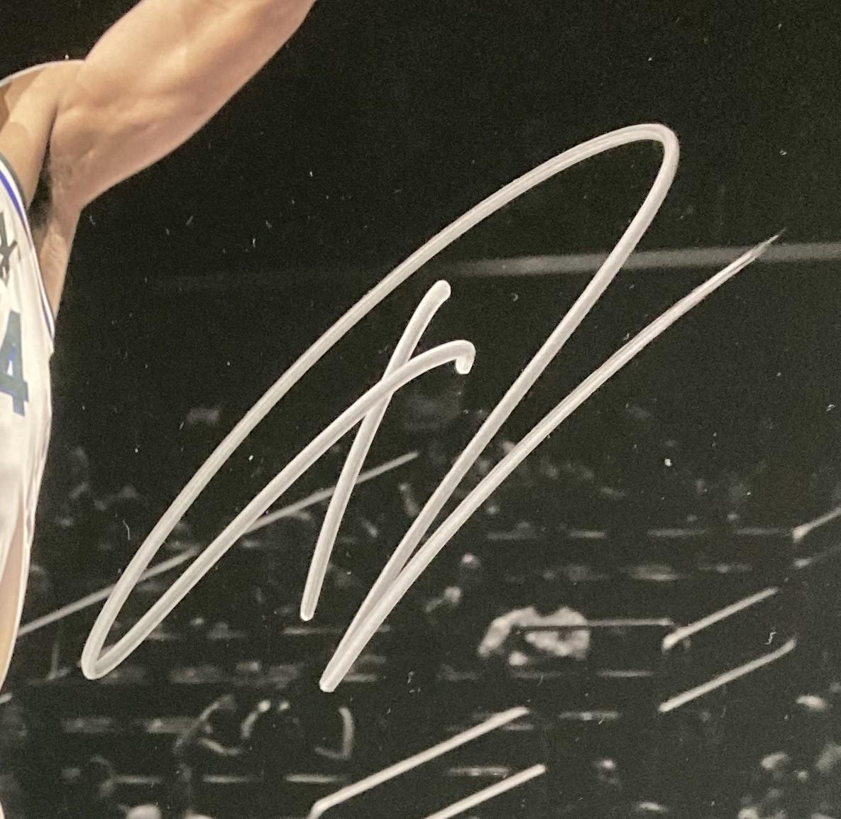 Photo measures 16" x 20" in size and has been hand-signed by Giannis Antetokounmpo (Milwaukee Bucks).