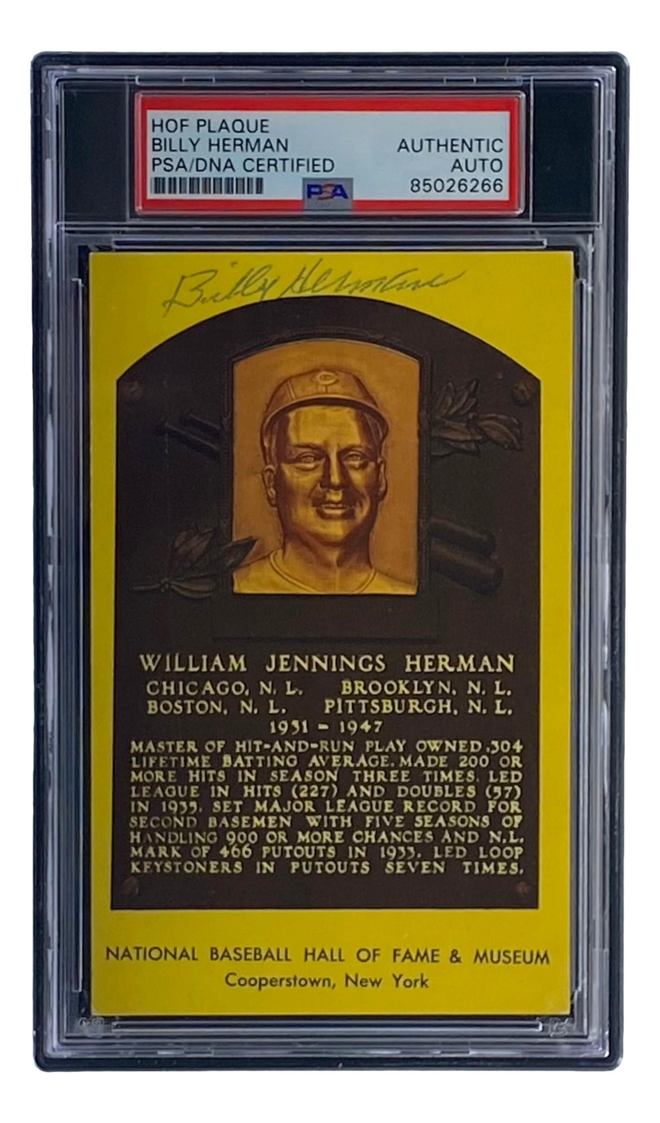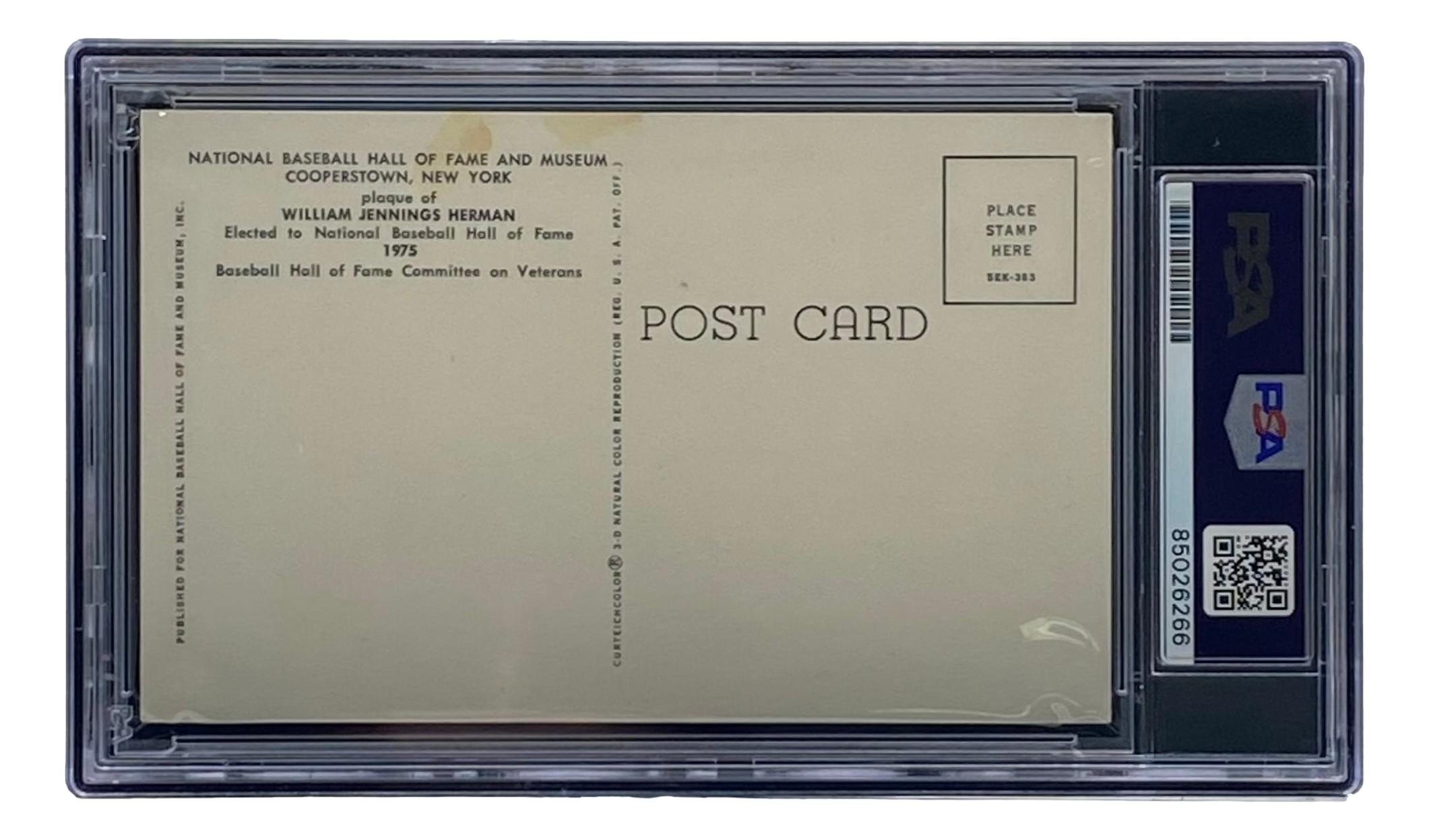 Billy Herman Signed Hall of Fame Plaque Postcard (PSA)