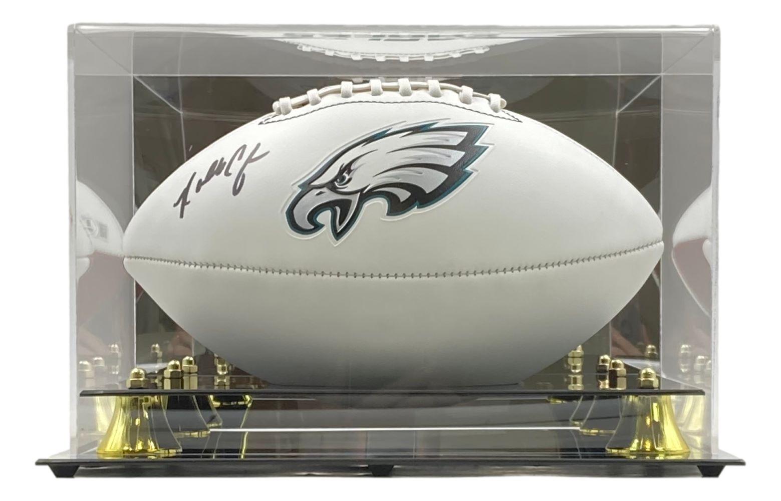 Randall Cunningham Signed Eagles Logo Football with Display Case (Beckett)