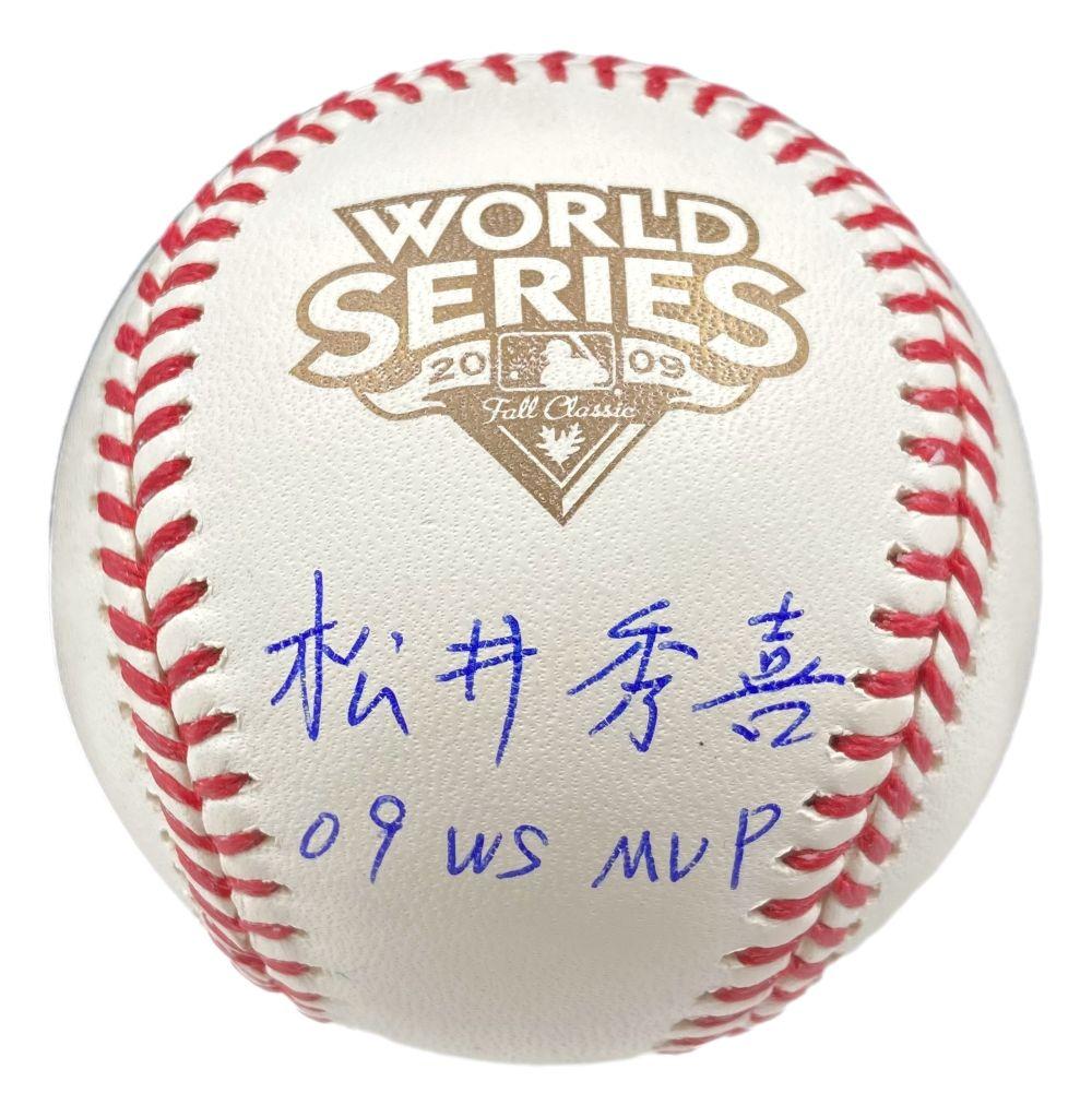 Rawlings Official 2009 World Series Logo baseball has been hand-signed in Kanji and inscribed by Hideki Matsui (New York Yankees).