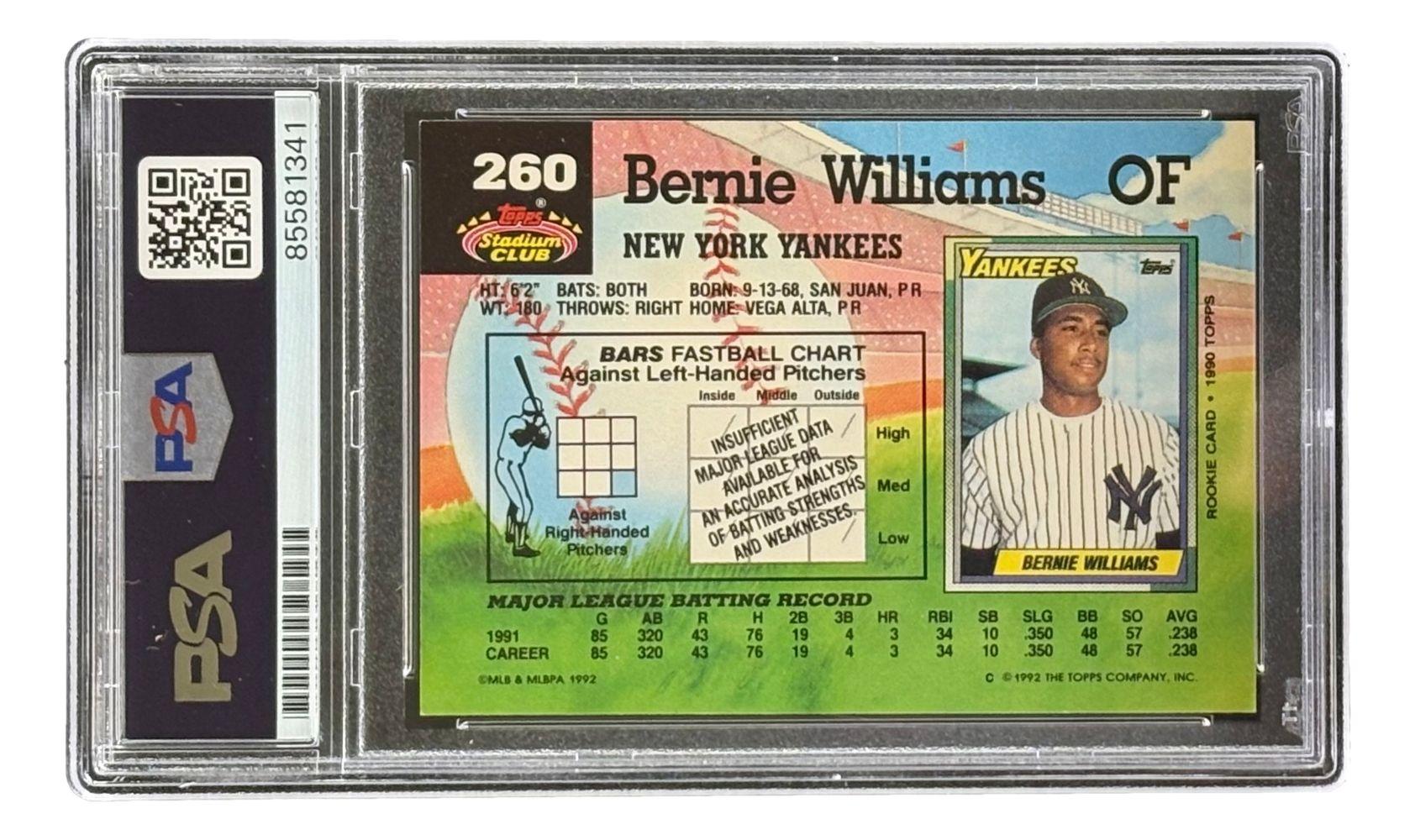 Bernie Williams Signed 1992 Topps Stadium Club #260 (PSA)