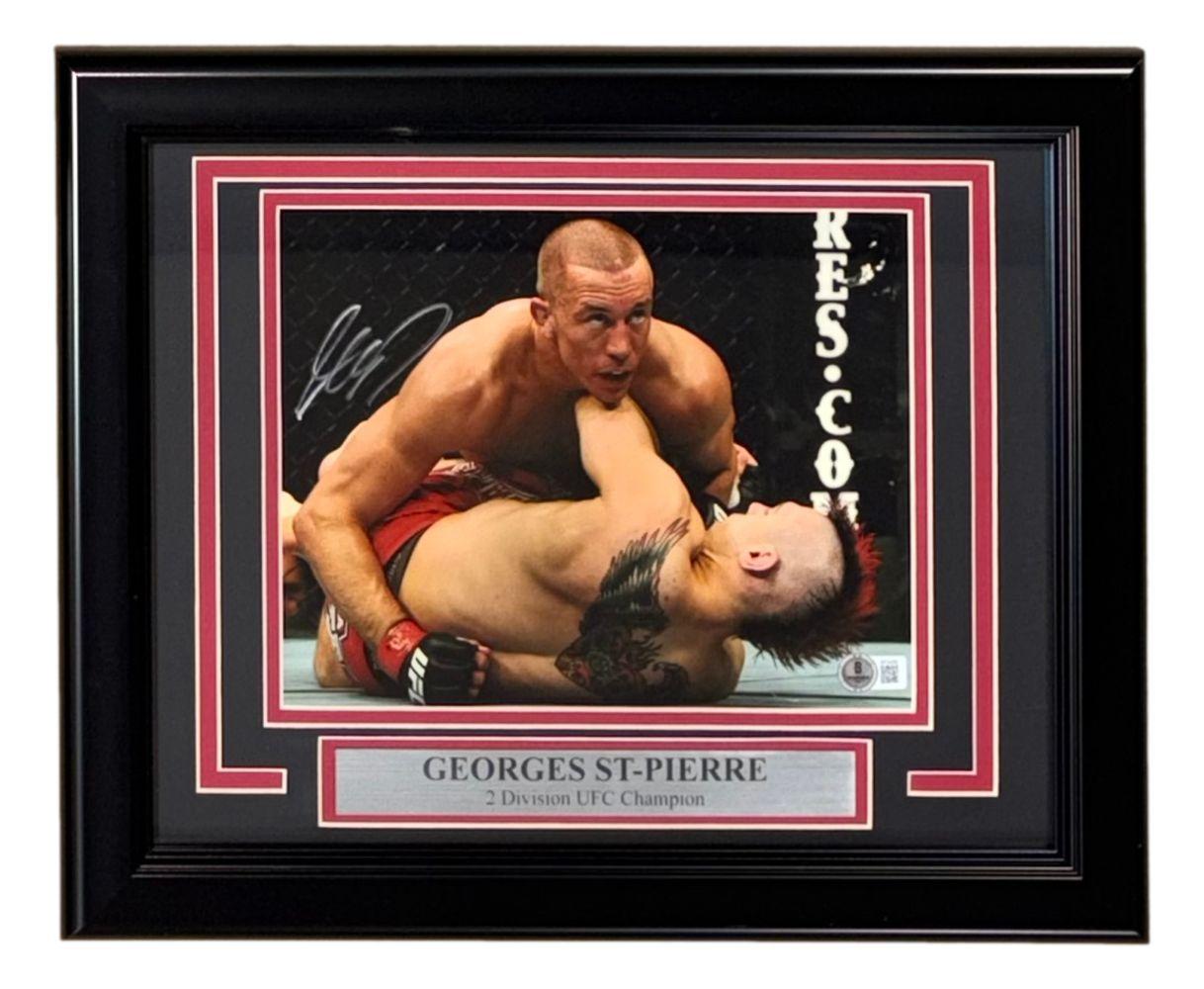 Custom frame measures approximately 11" x 14" in size and features a photo that has been hand-signed by Georges St-Pierre.