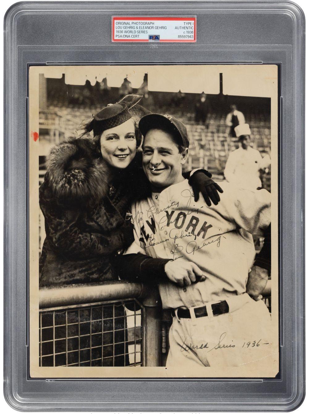 Lou Gehrig & Eleanor Gehrig Signed Yankees 8x10 Photo Inscribed "World Series 1936" (PSA)