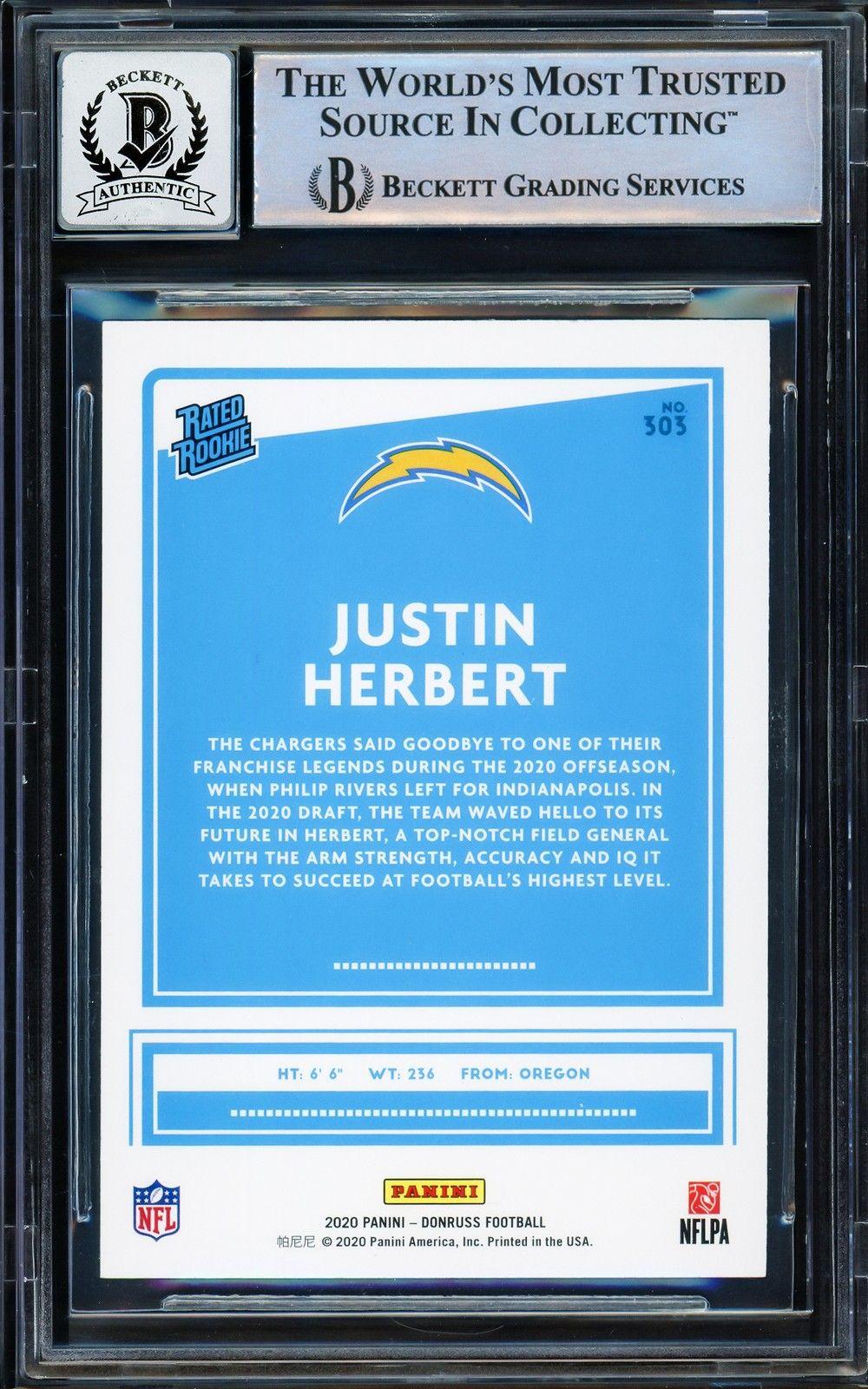 Justin Herbert Signed 2020 Donruss #303 RC (BGS | Auto Grade 10)